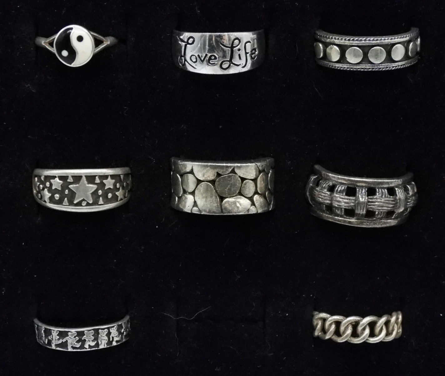 Eight sterling fashion ring bands. Sizes 5-8 (23 dwt)