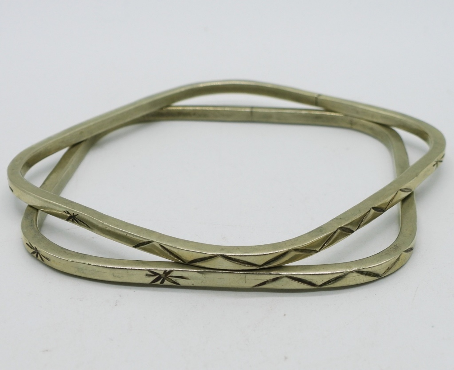Two square sterling bangle bracelets. Marked “Sterling 925”. (17.4 dwt)