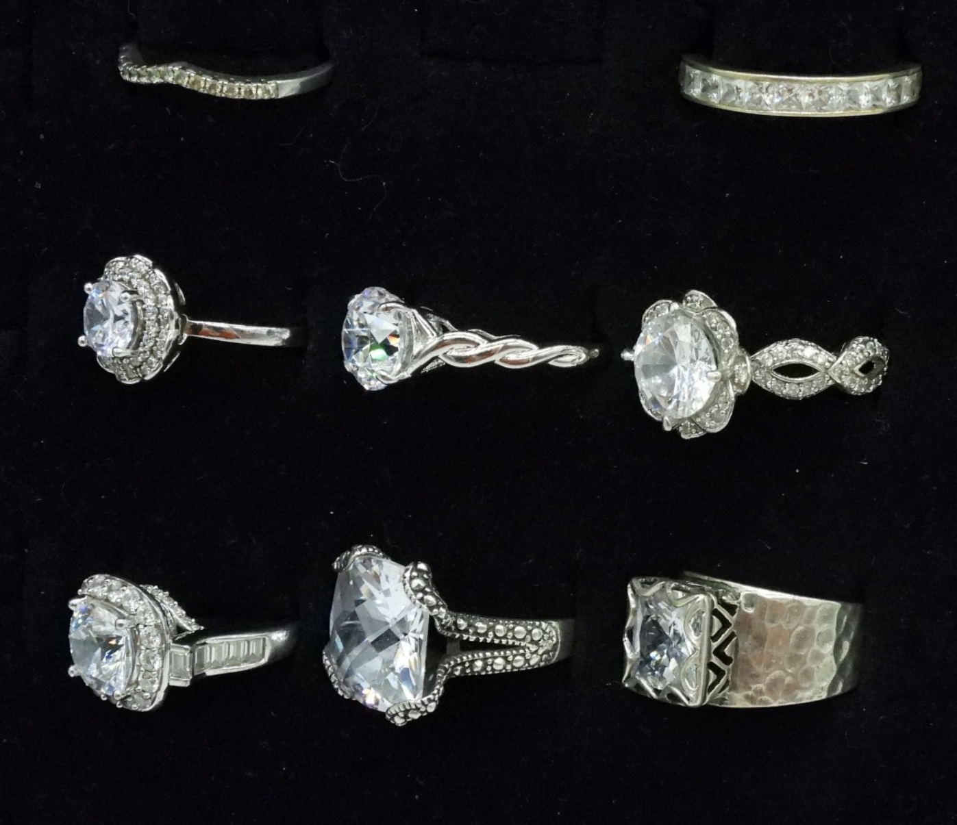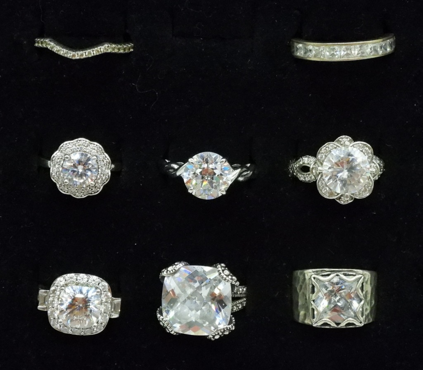 Eight sterling bridal style engagement rings. Sizes 6-9 (27.9 dwt)