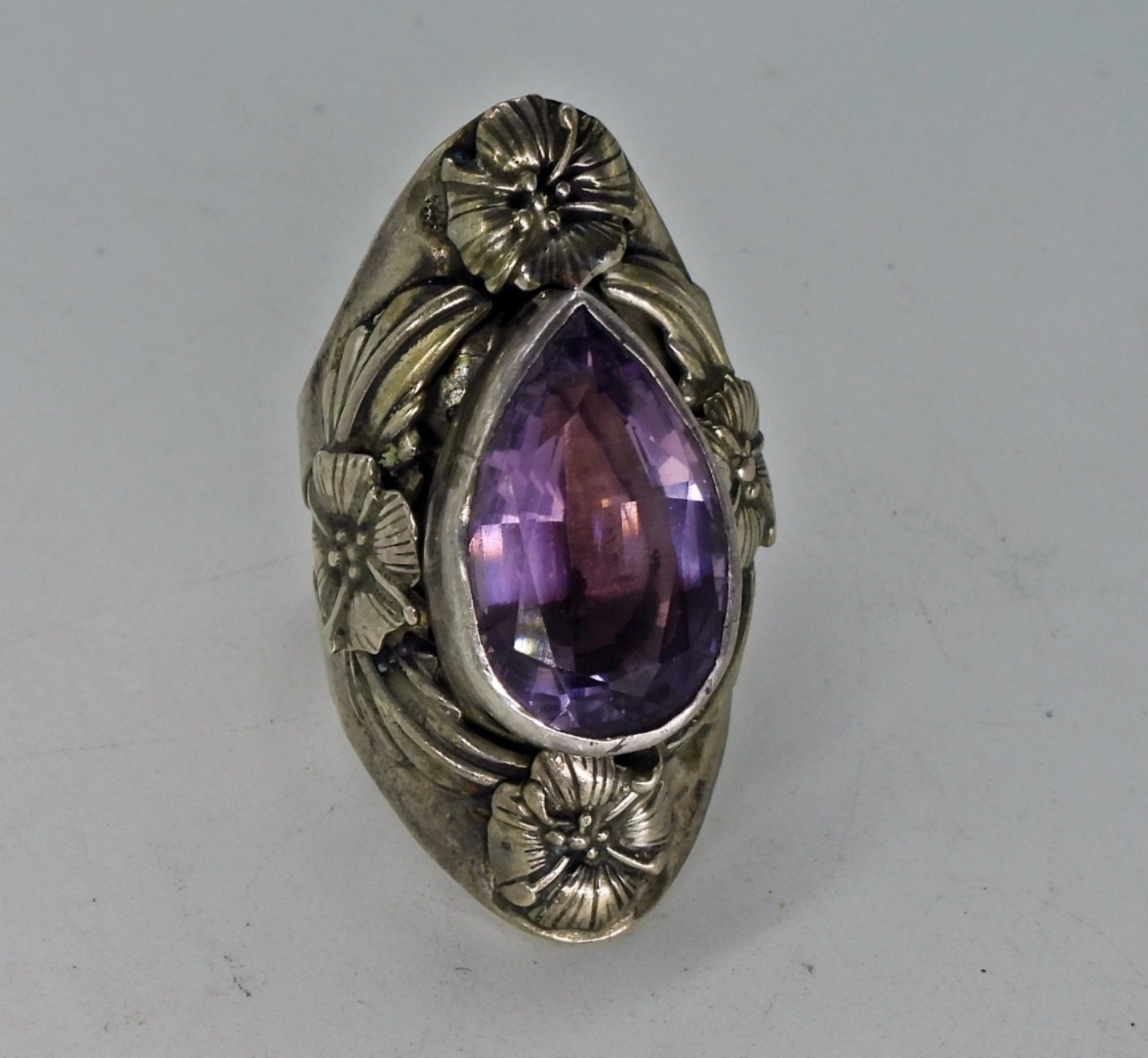 Incredible sterling ring with large amethyst gemstone. Size 9 (10 dwt)