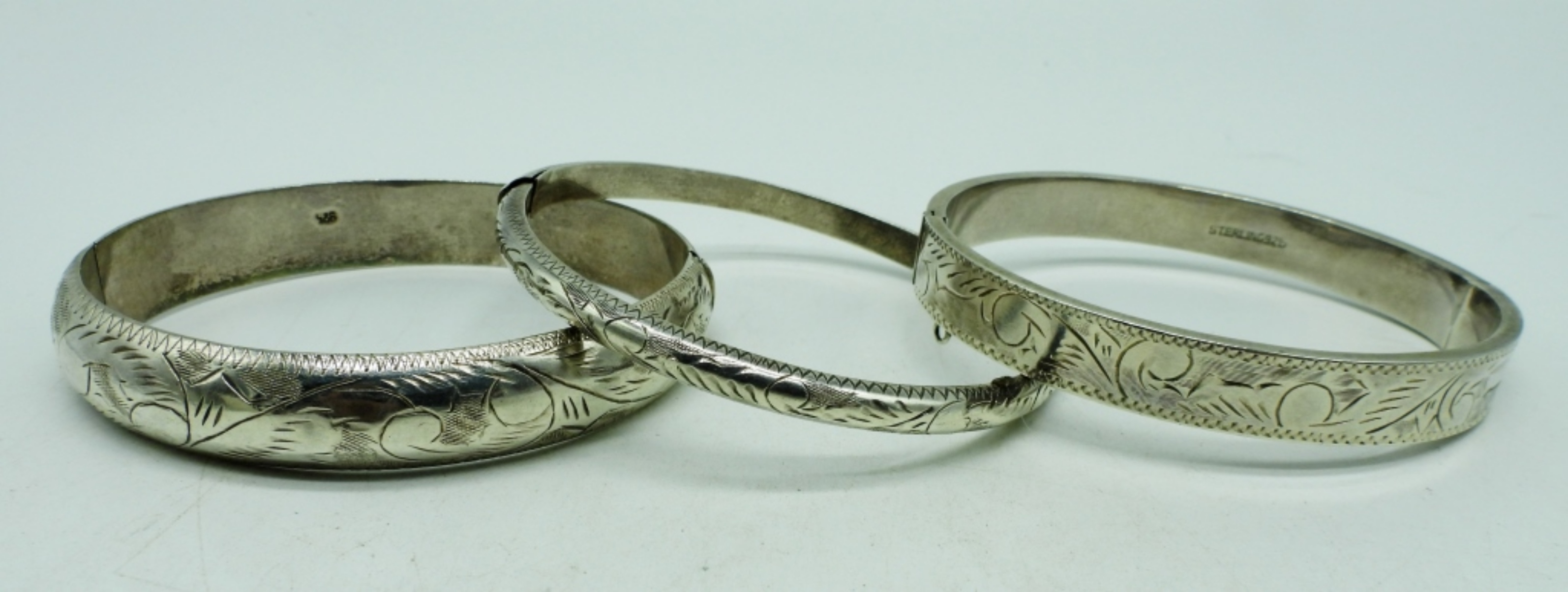 Three sterling hinged bangle bracelets, 7-8″. (23.3 dwt)