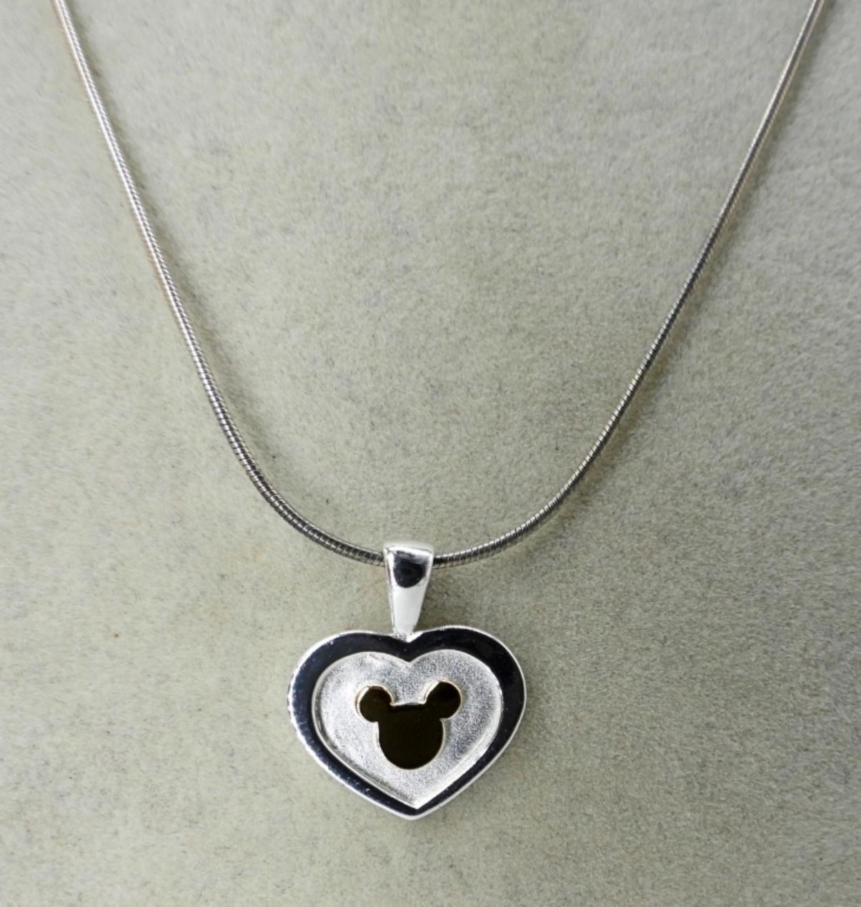 Sterling mickey mouse heart pendant on an 18″ chain. Heart bracelet 7.5″. Ring size 8 (13.7 DWT)