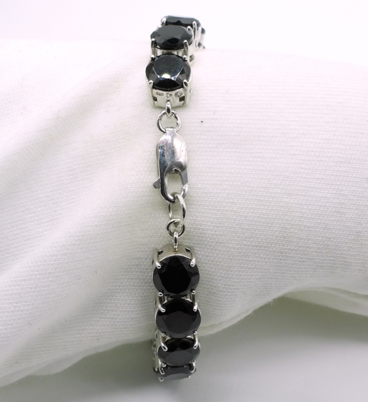Black Spinel necklace, bracelet & 2 pair pierced earrings (earrings may not be spinel). Necklace 20″. Bracelet is 8″. (32 dwt)