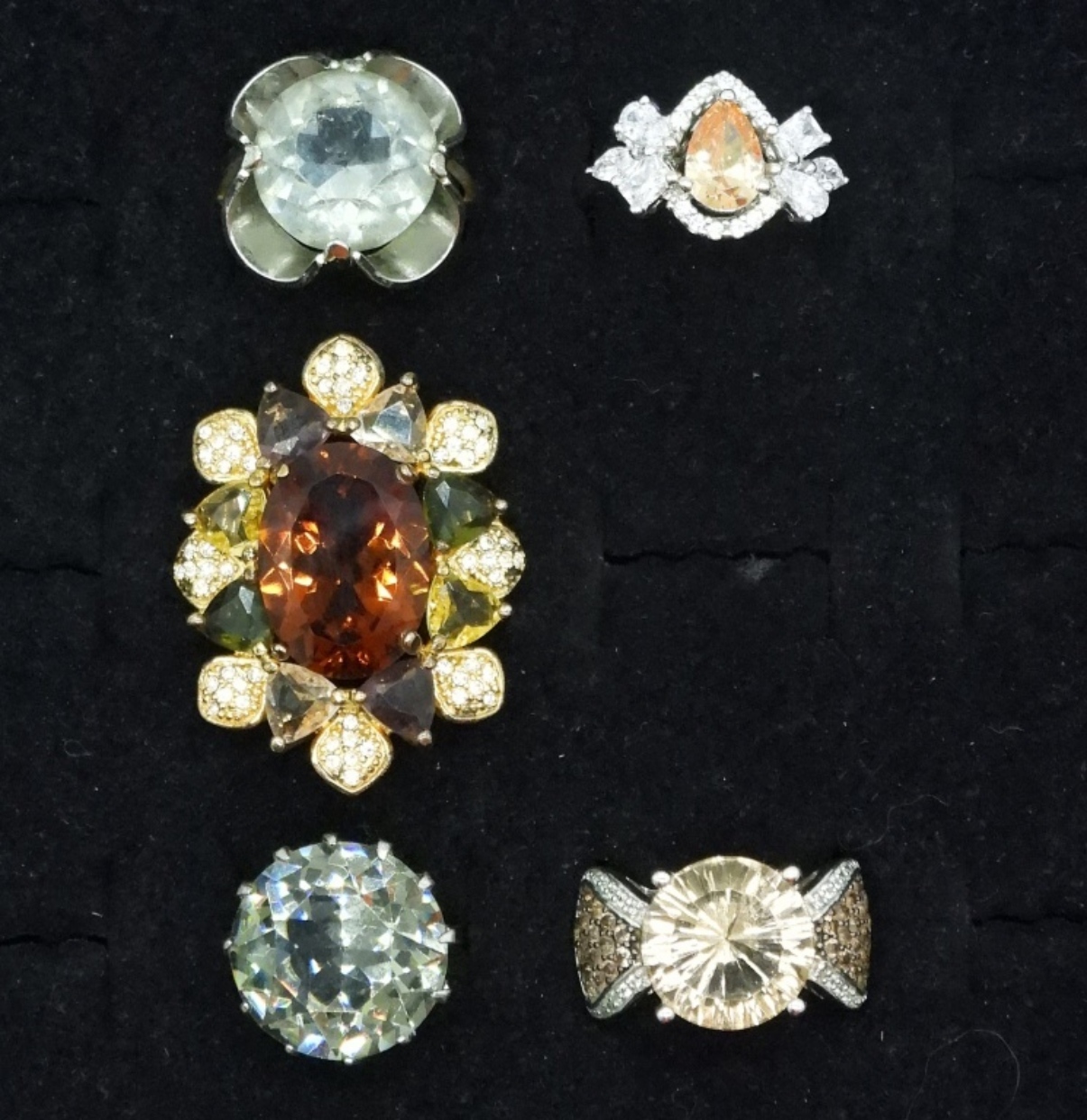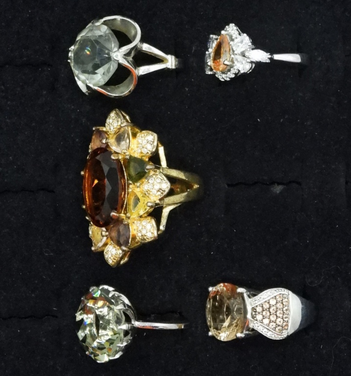 Five sterling rings. Unidentified gemstones. Sizes 5-8 (26 dwt)