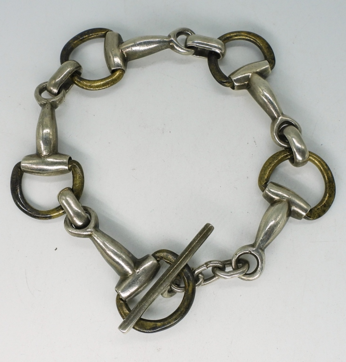 Sterling Taxco, horse bit bracelet. 9″ long. (31.2 dwt)