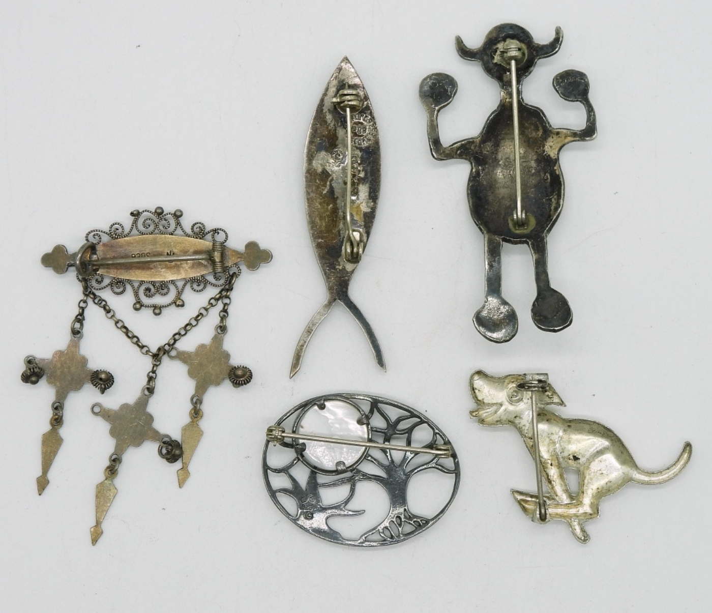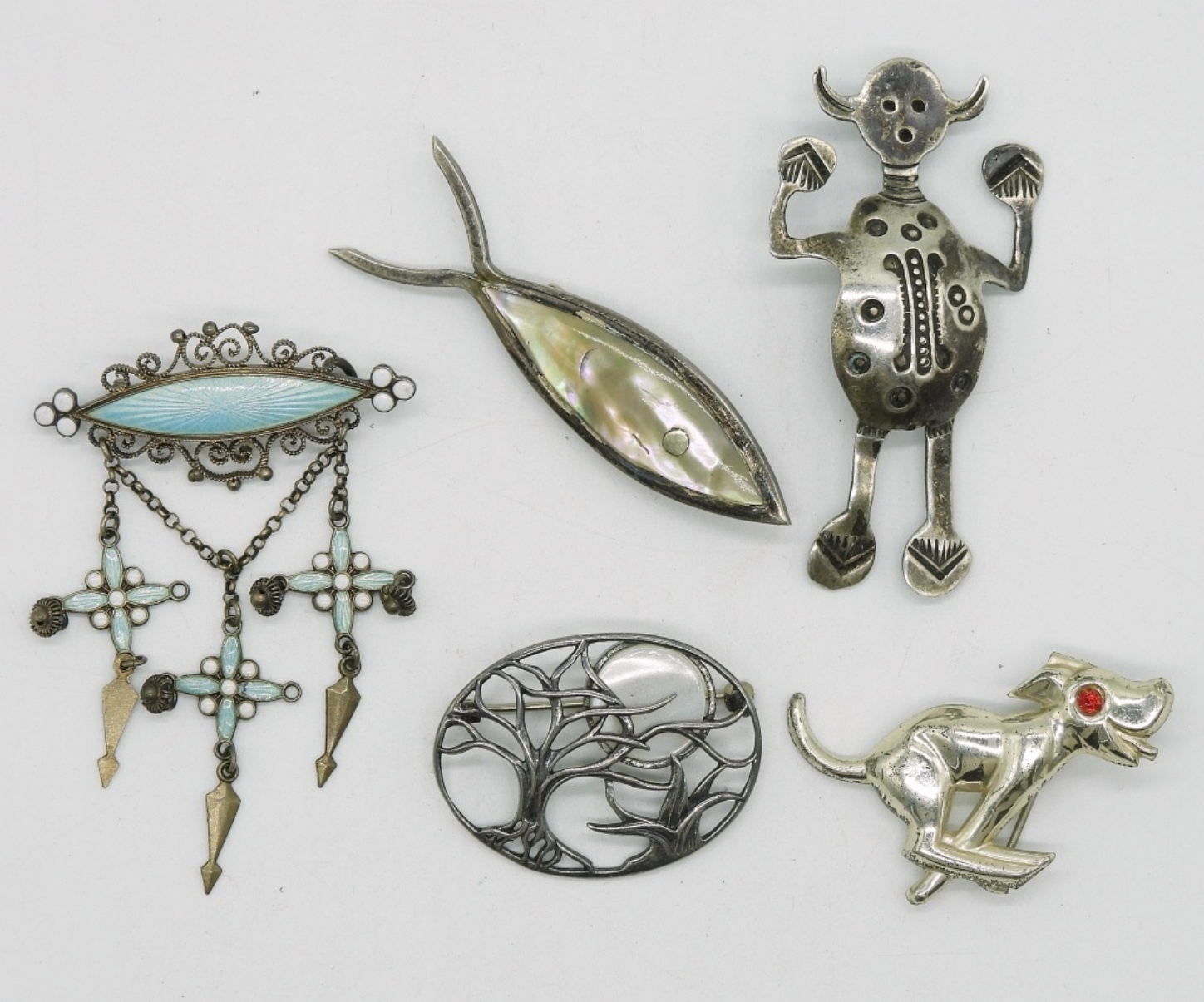 Five vintage sterling pins, Some a bit odd. 1.5″ – 3″. (18.4 dwt)
