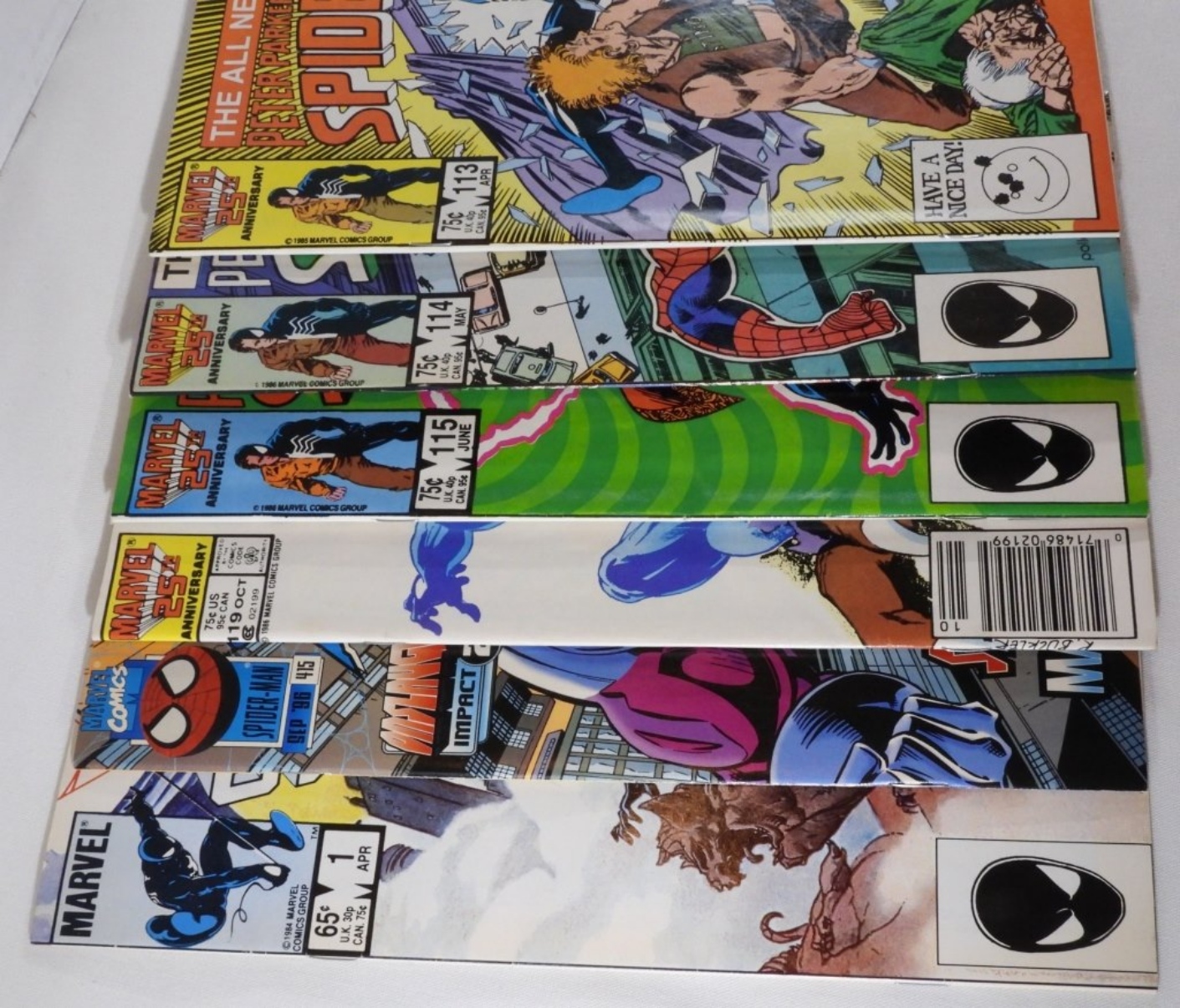 6 Marvel Spider-Man comics, #113, #114, #115, #119, #415, #1. All in various conditions.