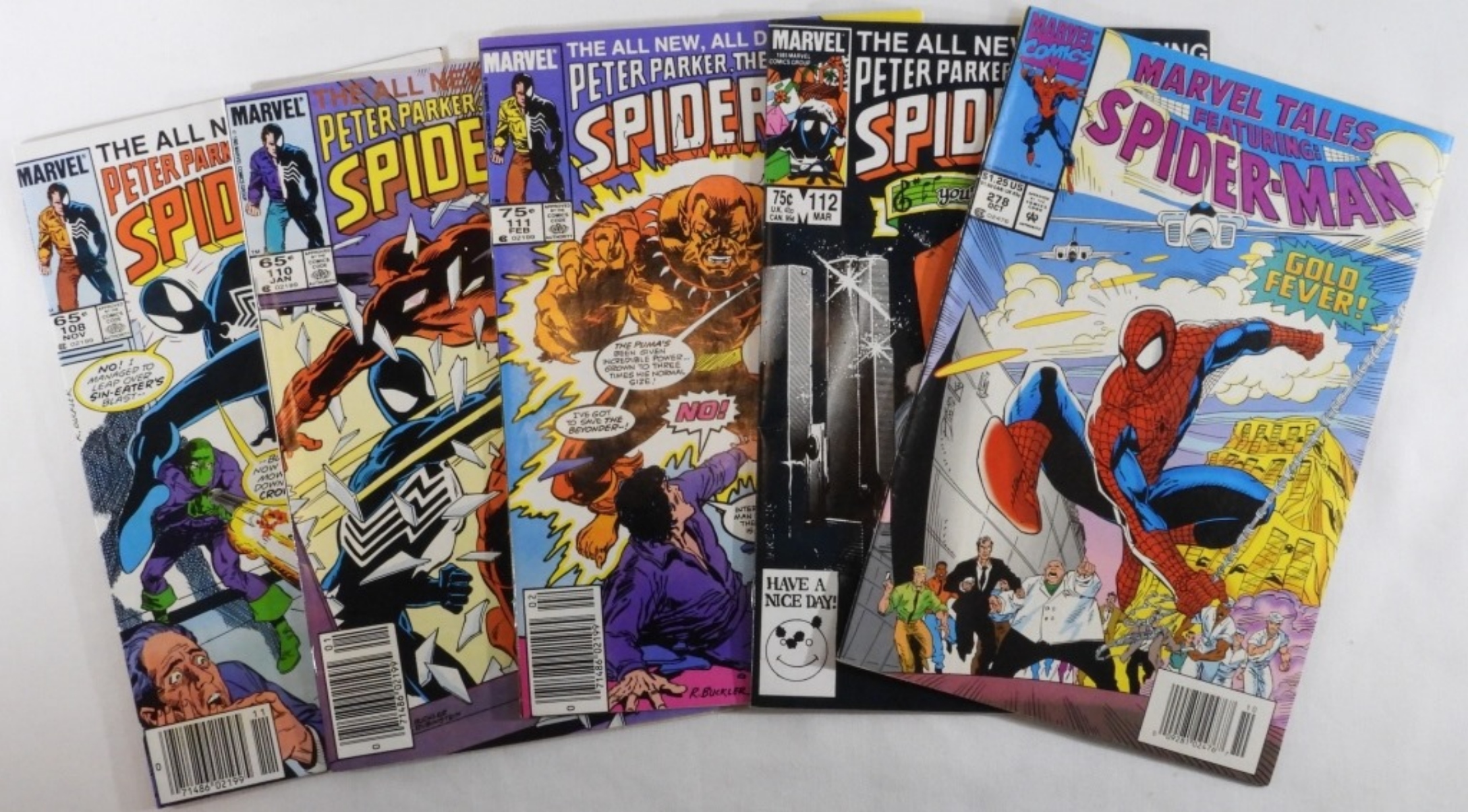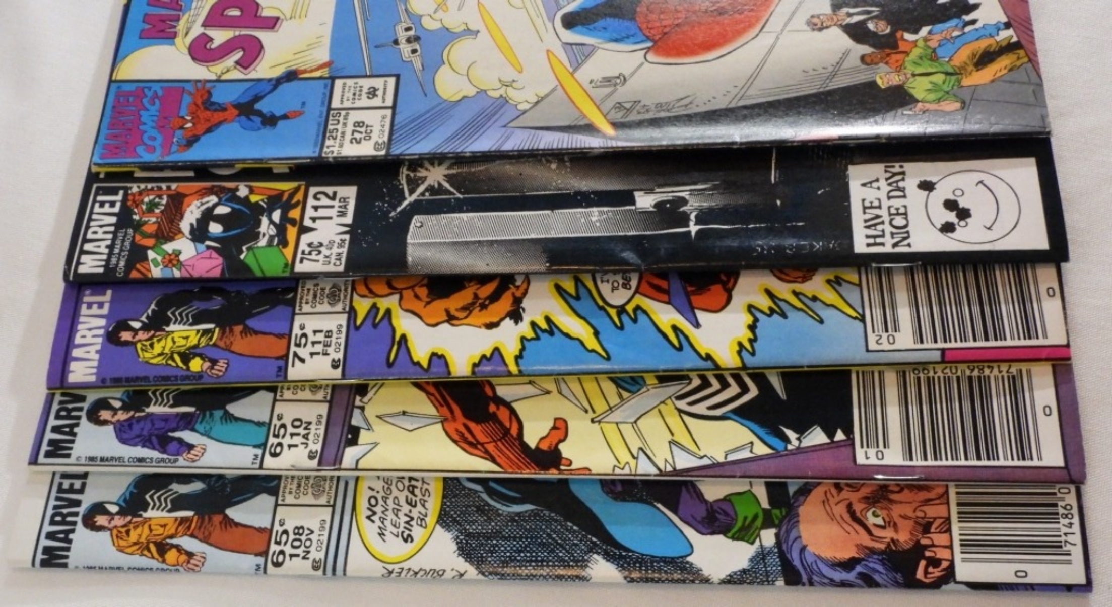 5 Marvel Spider-Man comics, #112, #111, #110, #108, and #278. All in various conditions.