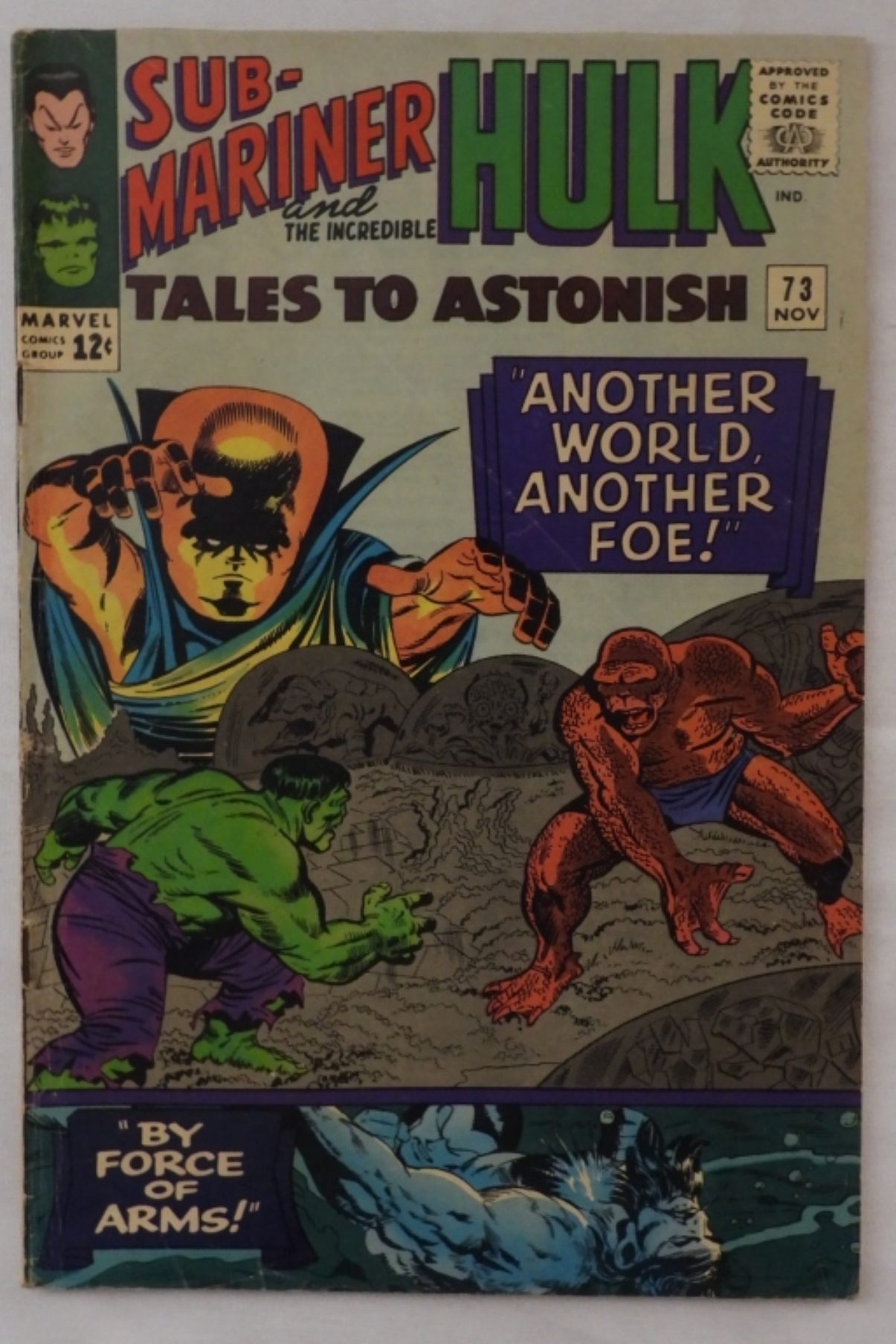 Sub-Mariner & The Incredible Hulk. #73 “Another World, Another Foe!”. In Good condition(normal wear from the years with creases) Approved by the Comics Code Authority, 12-cent issue