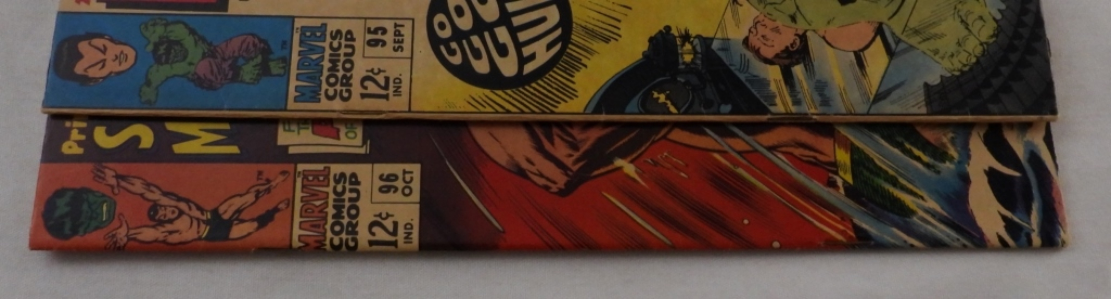 Sub-Mariner & The Incredible Hulk. Both 12-cent issues. #95 in Good condition. #96 in G/VG condition. Approved by the Comics Code Authority