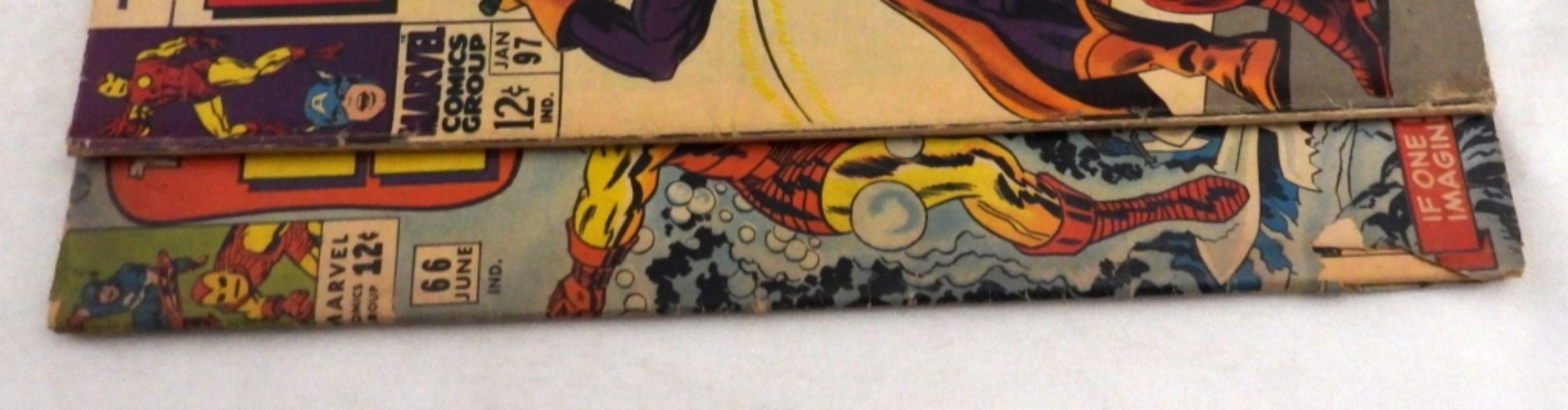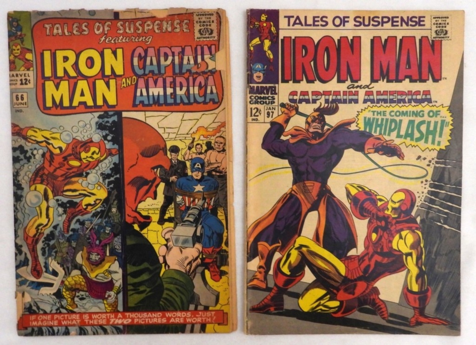 Silver Age comics, Tales of Suspense featuring Iron Man & Captain America, #66 & #97, #66 center page is detached, fair condition, #97 good condition