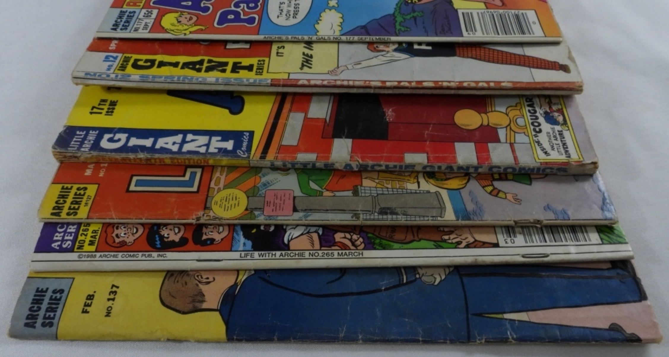 Pep number 137 has liquid damage on the cover, Archie’s Pals ‘N” Gals Number 12 is missing the back cover, and 177. Life With Archie Numbers 119, the cover is coming off as well as Toni Curry on the cover, 265, and