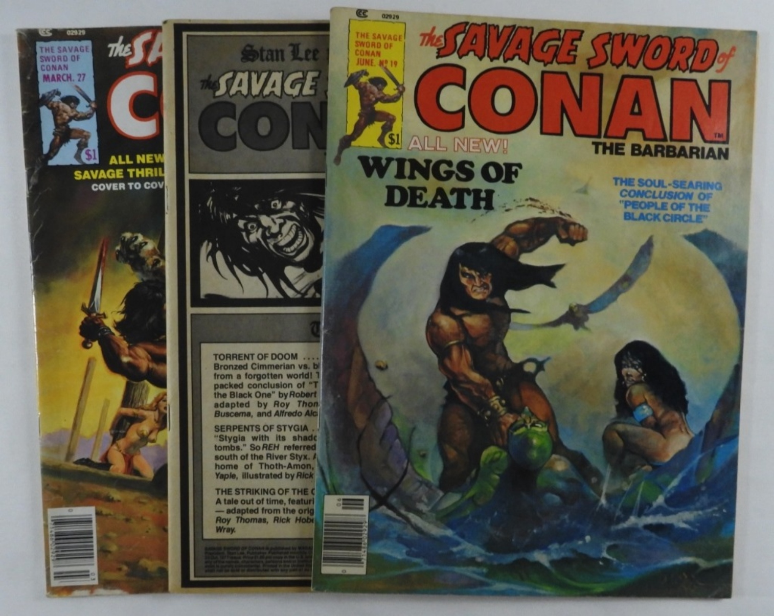 The Savage Sword Of Conan The Barbarian #19, 23, and 27, #23 is missing its cover, conditions vary
