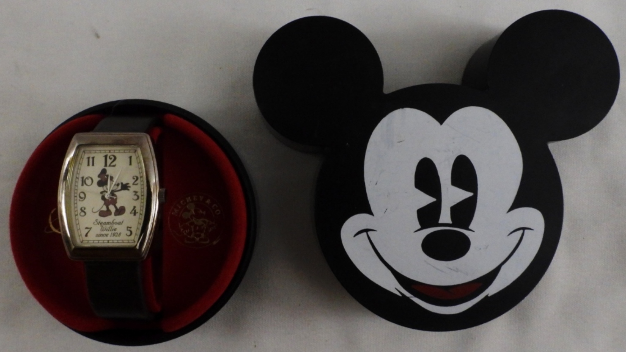 In a cute Micky Mouse-shaped case. Disney FSC#32099-1, Made in China. watches are not verified, authenticated, or tested in running condition unless specified