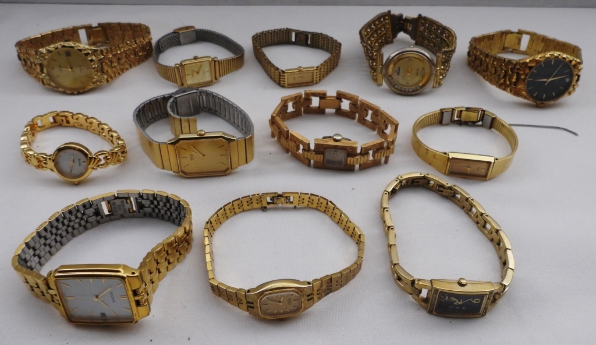 Watches are not verified, authenticated, or tested in running condition unless specified, 12 gold-tone, different styles and sizes