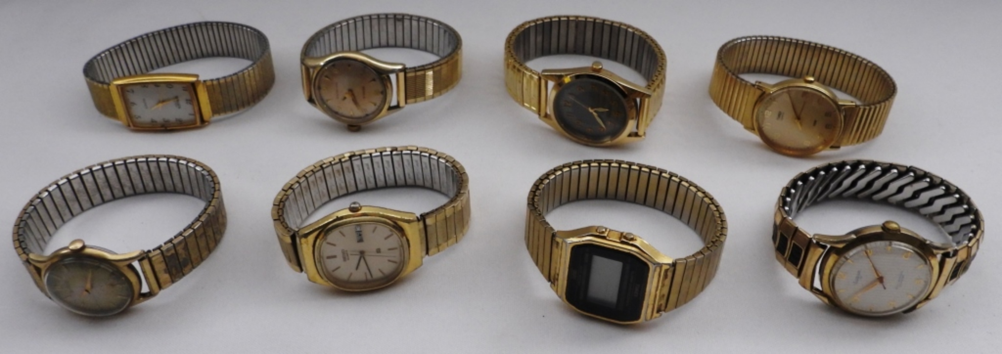 Watches are not verified, authenticated, or tested in running condition unless specified, 8 gold-tone stretch band, different styles and sizes