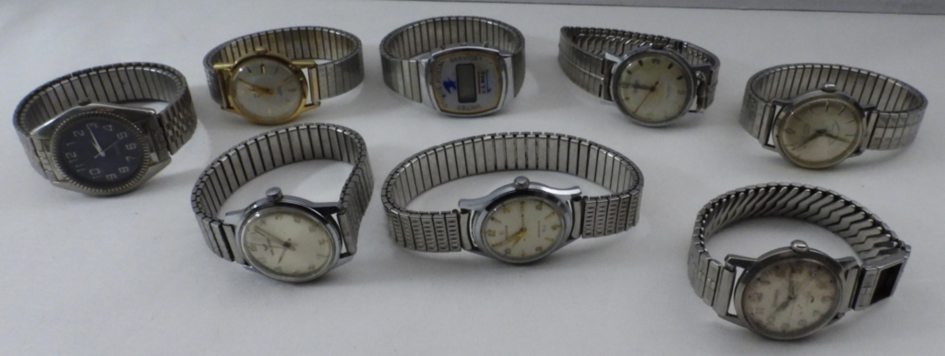 Watches are not verified, authenticated, or tested in running condition unless specified, 8 silver-tone men’s, stretch band, different styles and sizes