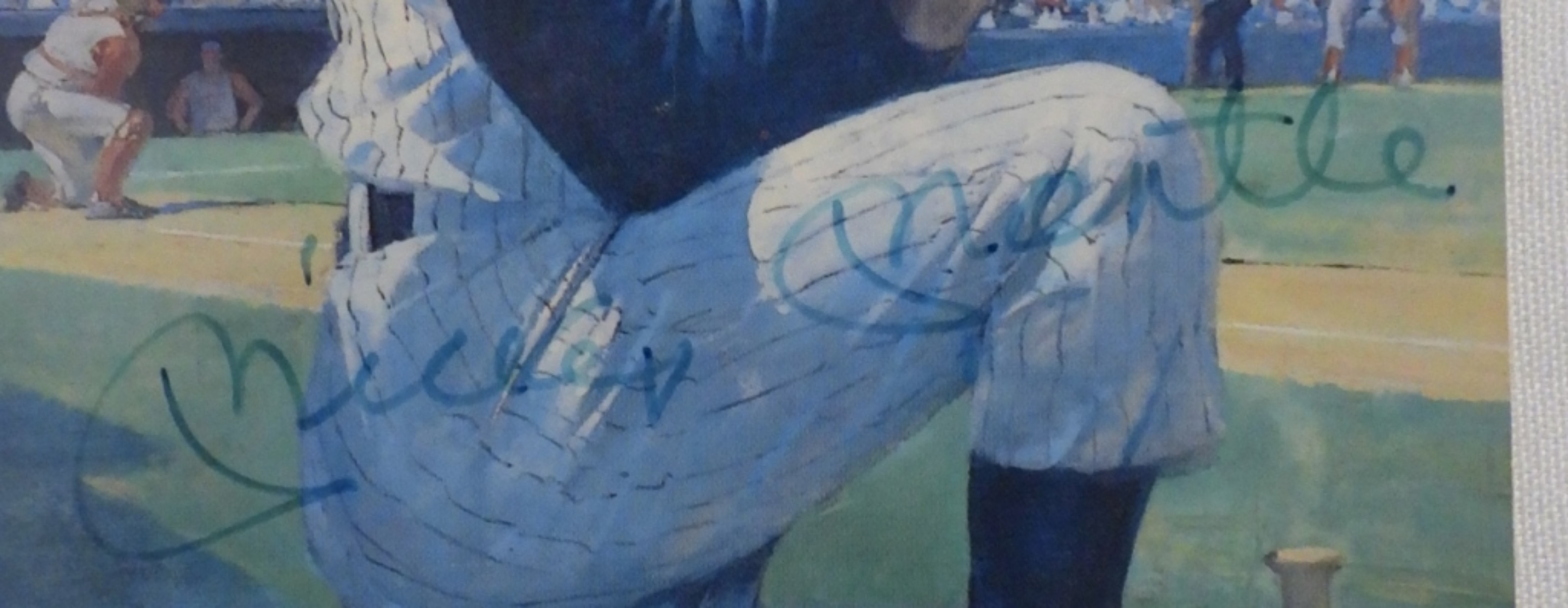 unused Mickey Mantle postcard, signed with a Letter of Authenticity, there are pieces of tape on the back and a couple holes on the top