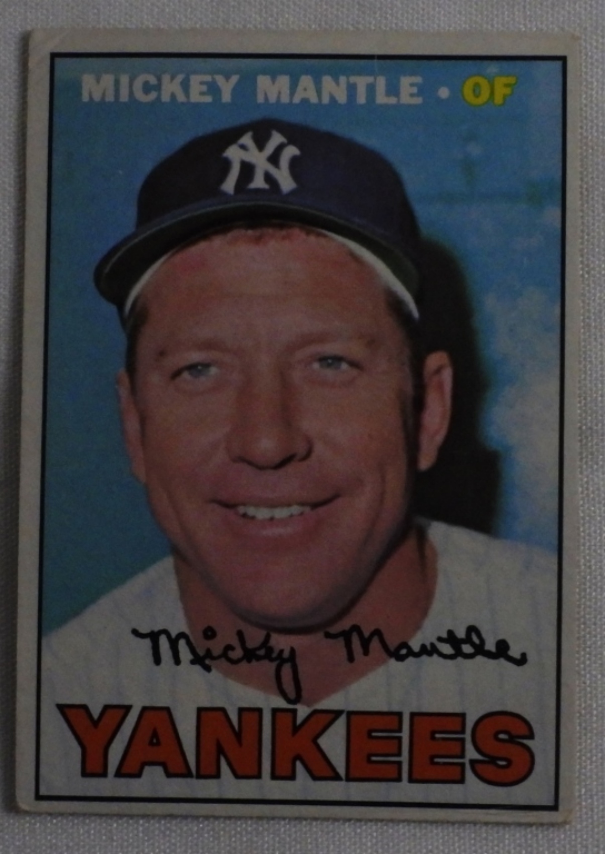 TOPPS #150, Mickey Mantle 1967, top left corner has crease, vg