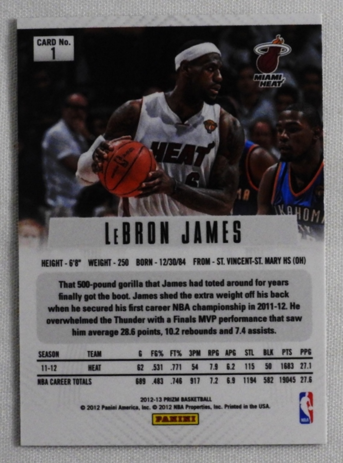 Lebron James 2012-13, Panini Prizm, Miami Heat, #1 2012-13