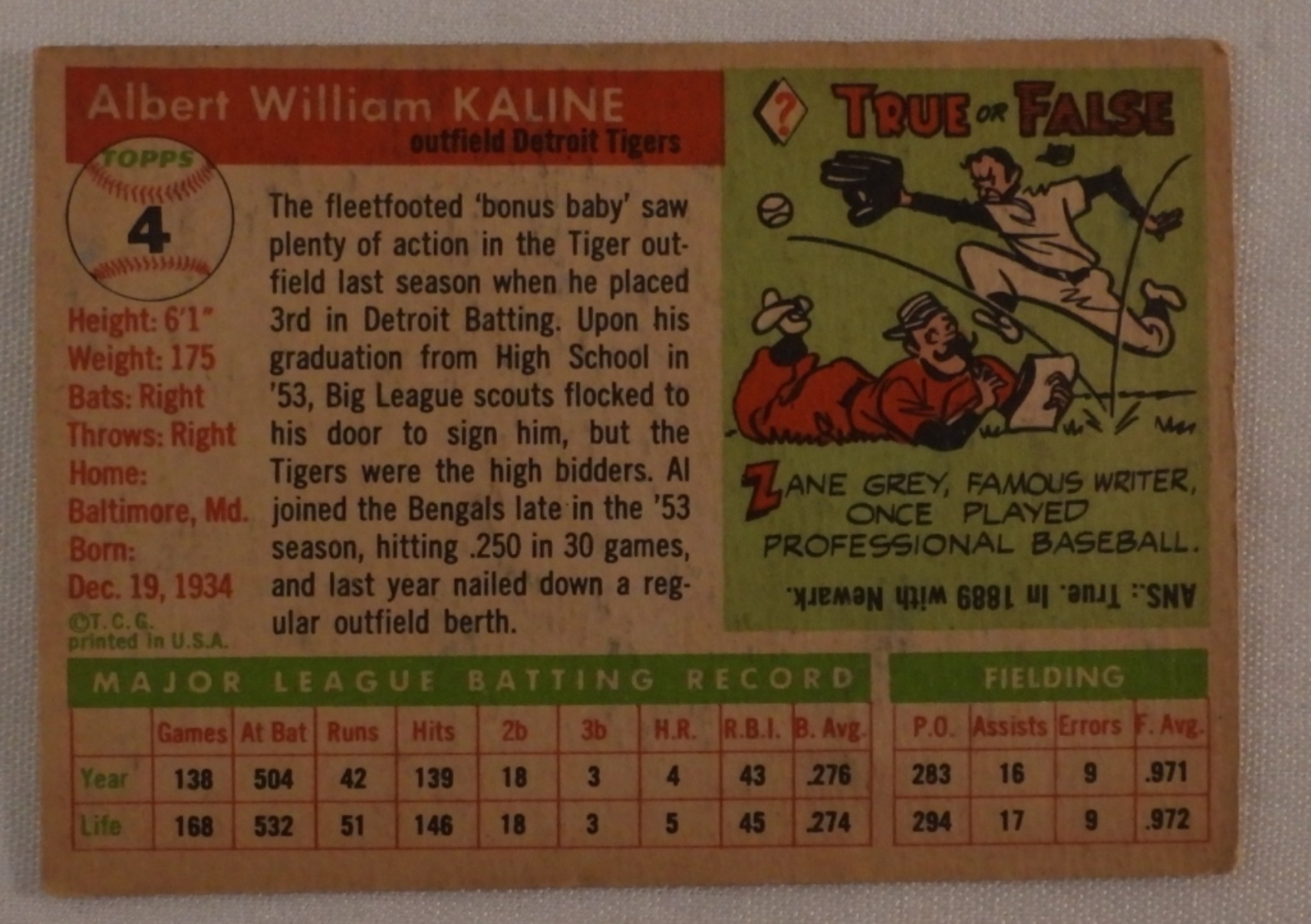 1955 Al Kaline Topps # 4. In good condition.