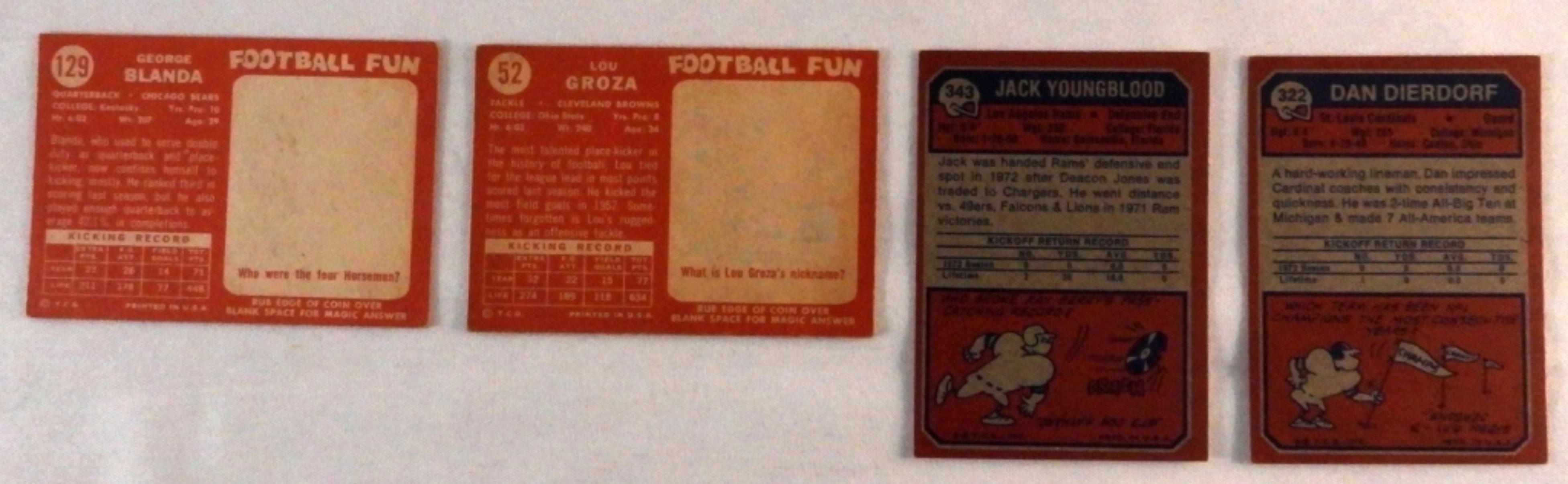 Dan Dierdorf #322, Jack Youngblood #343, Lou Groza #52, and George Blenda #129