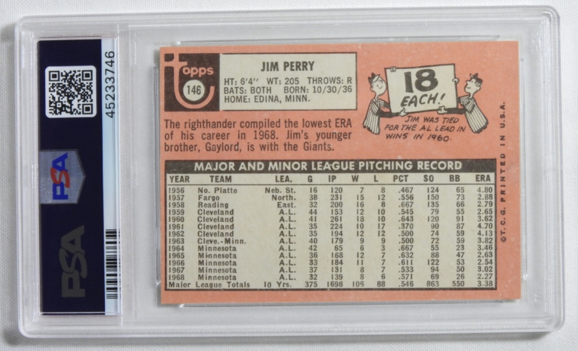 1969 TOPPS Jim Perry #146 NM-MT 8 (45233746)