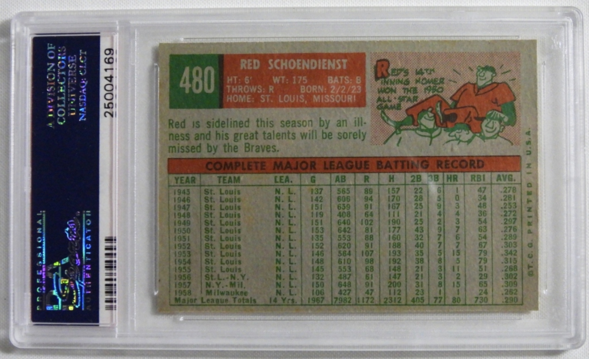 1959 TOPPS Red Schoendienst #480 NM 7 (25004169)