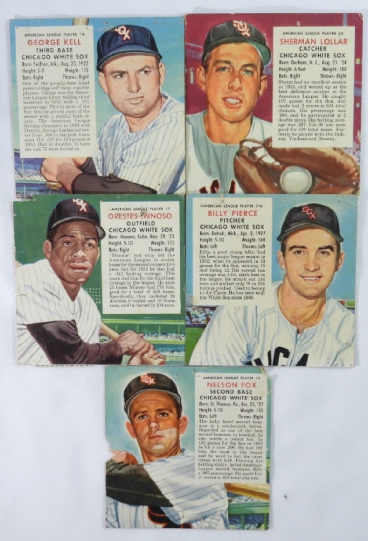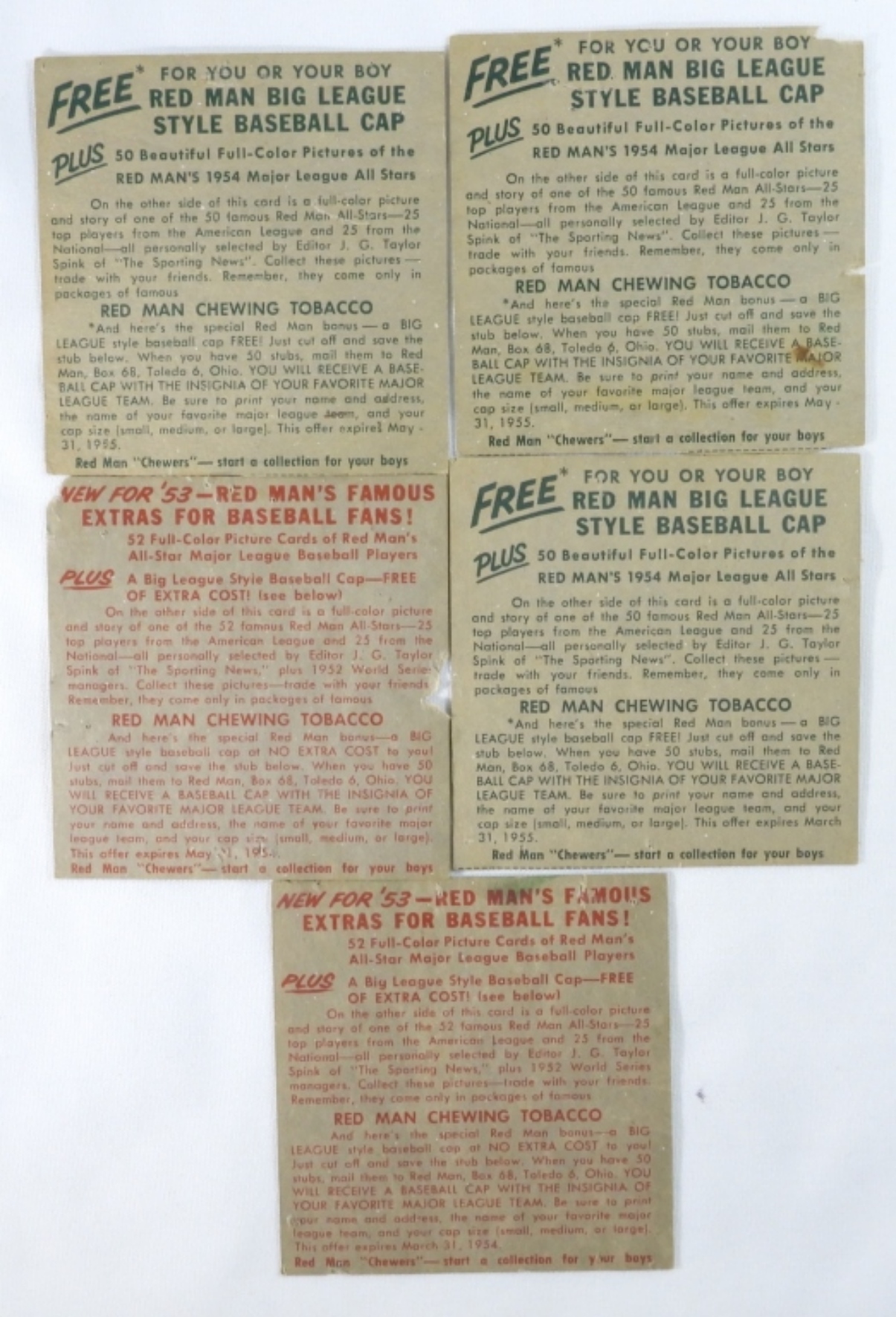 Mixed lot of Red Man tobacco cards, some of which include Nelson Fox, Billy Pierce, George Kell, and more. All have some pin-sized holes or some wear and tear.