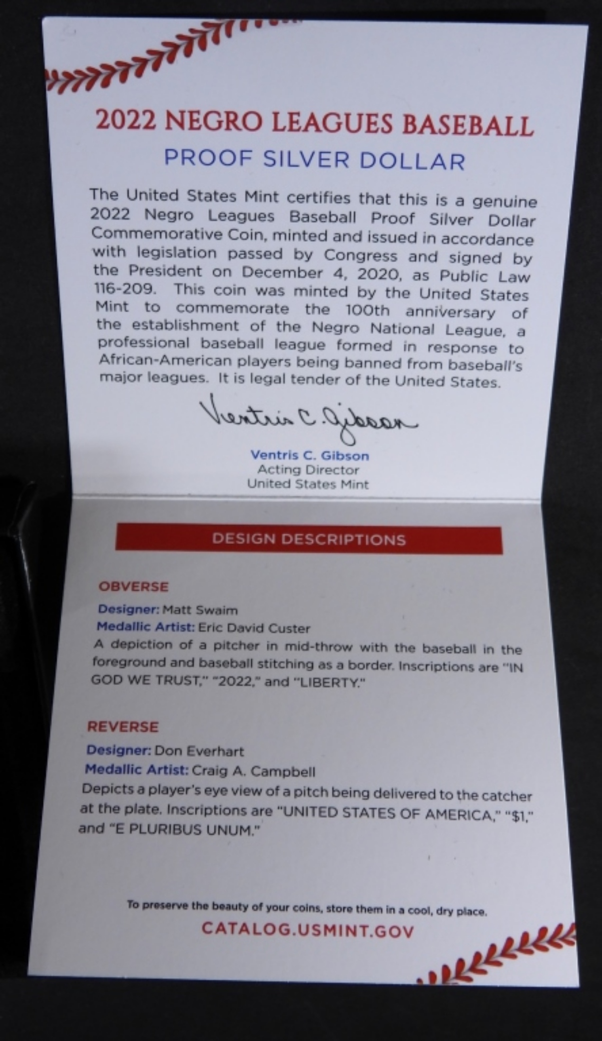 Commemorative Silver Dollar, from United States Mint, The Soul Of Baseball, still in its original box