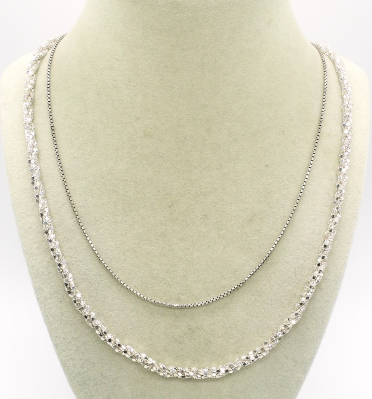 Two sterling chain necklaces, 30″. (18.6 dwt)