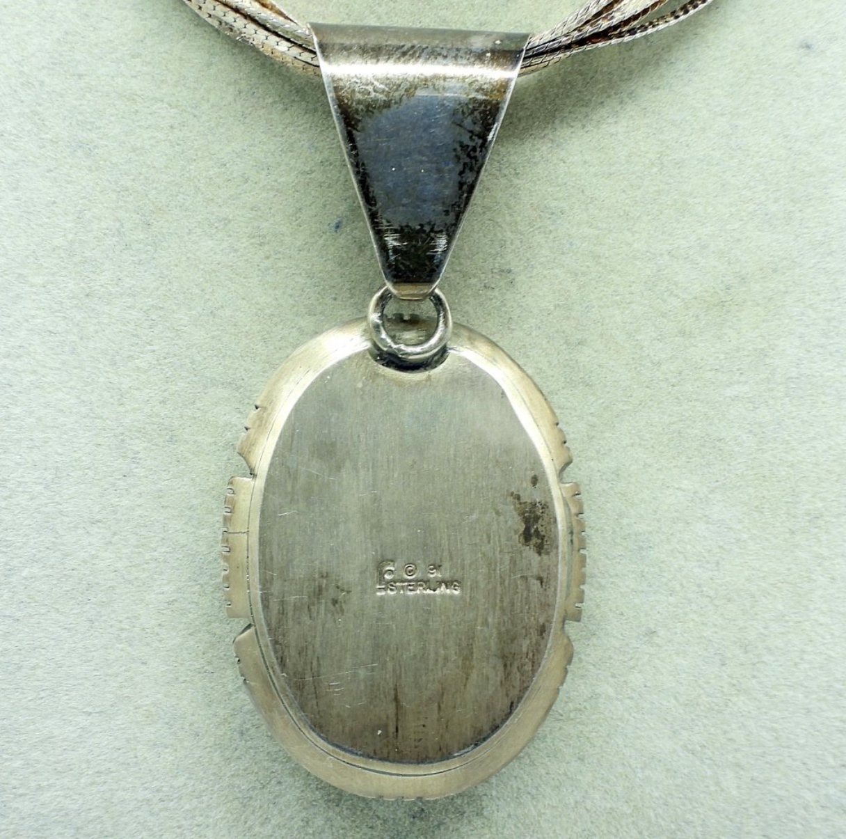 Multi Strand Sterling Chain, 20″ with a sterling mother of pearl pendant, 2.5″. (28.7 dwt)