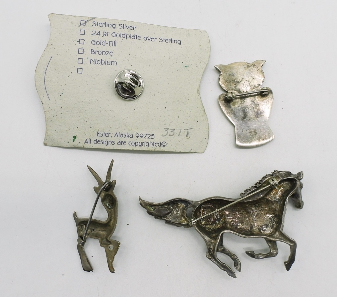 Four sterling animal brooches. 1: – 2.5″. (26.6 dwt)
