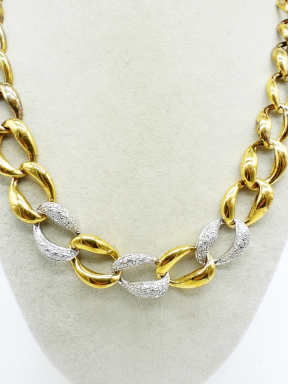 Gold tone, sterling necklace with simulated diamonds. 20″ Long. 20″ LONG. (39 DWT)