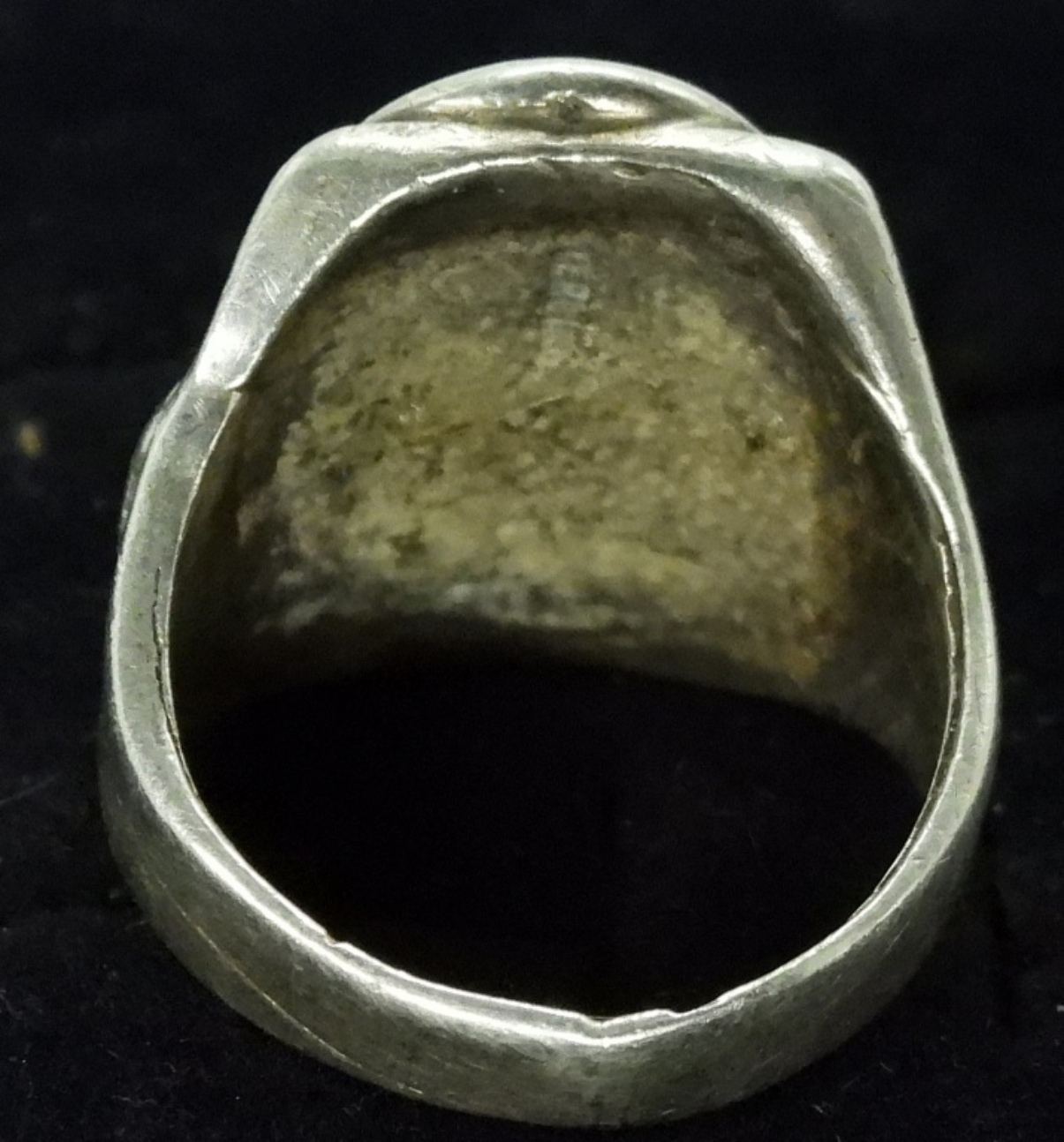 One pair of pierced sterling earrings with turquoise gemstones, 1.5″. Three sterling rings with turquoise, 6.5-10 (18.8 dwt)