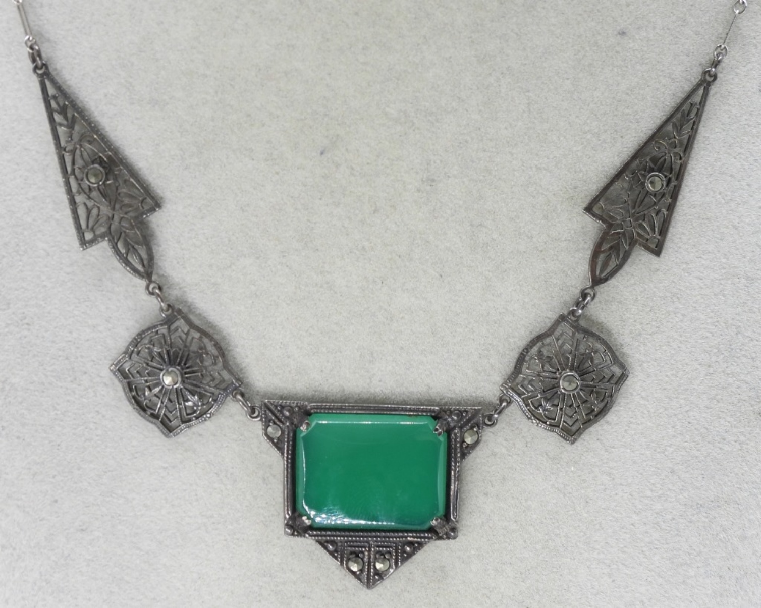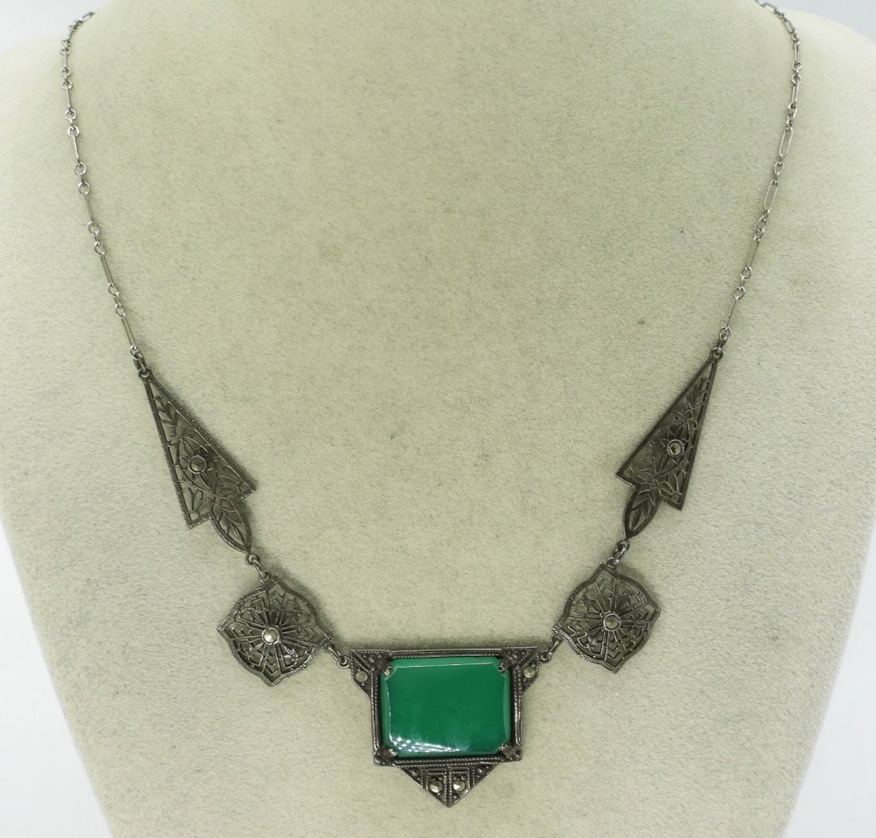 Art Deco vintage sterling necklace, 18″ filigree. (6 dwt)