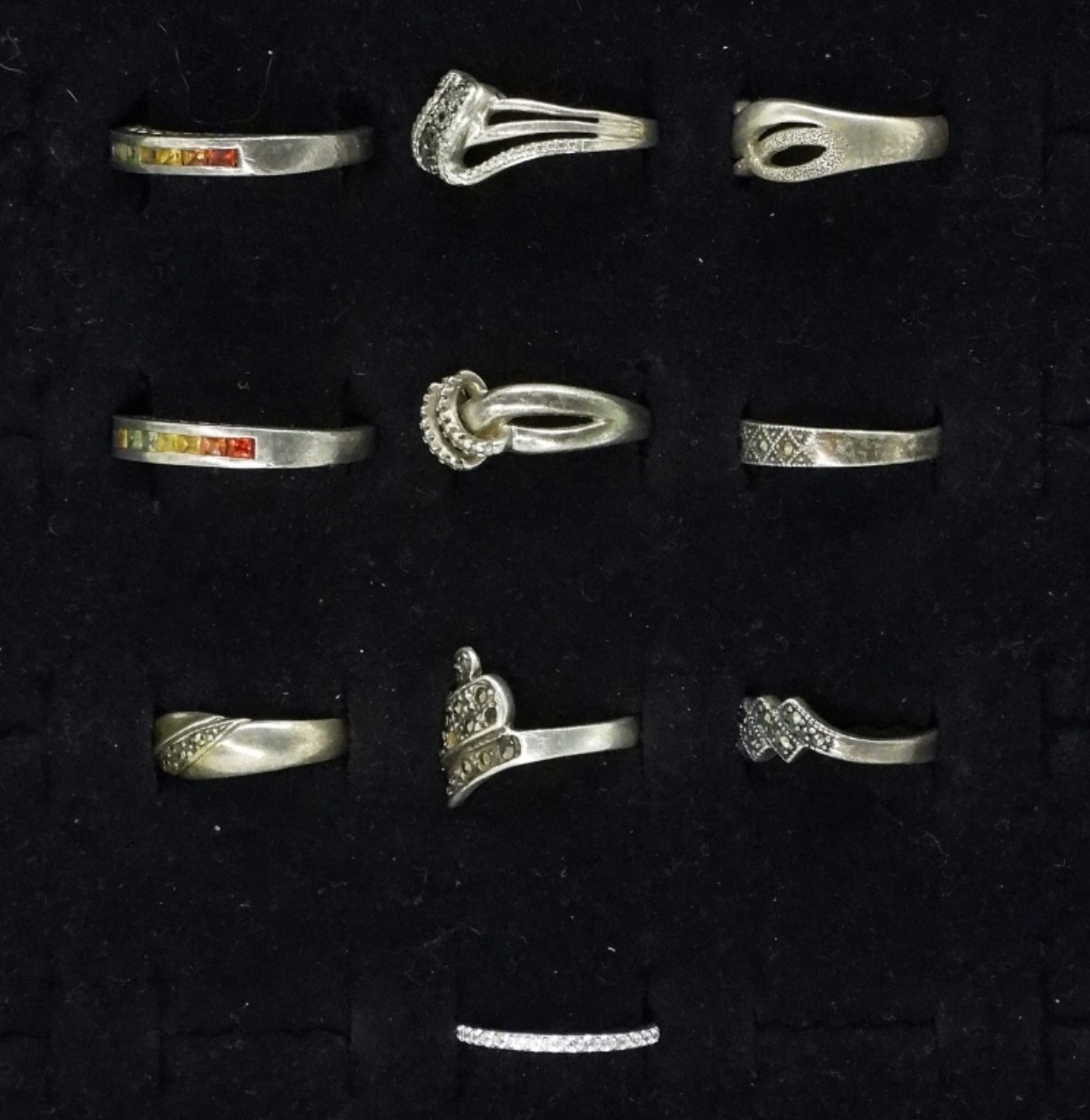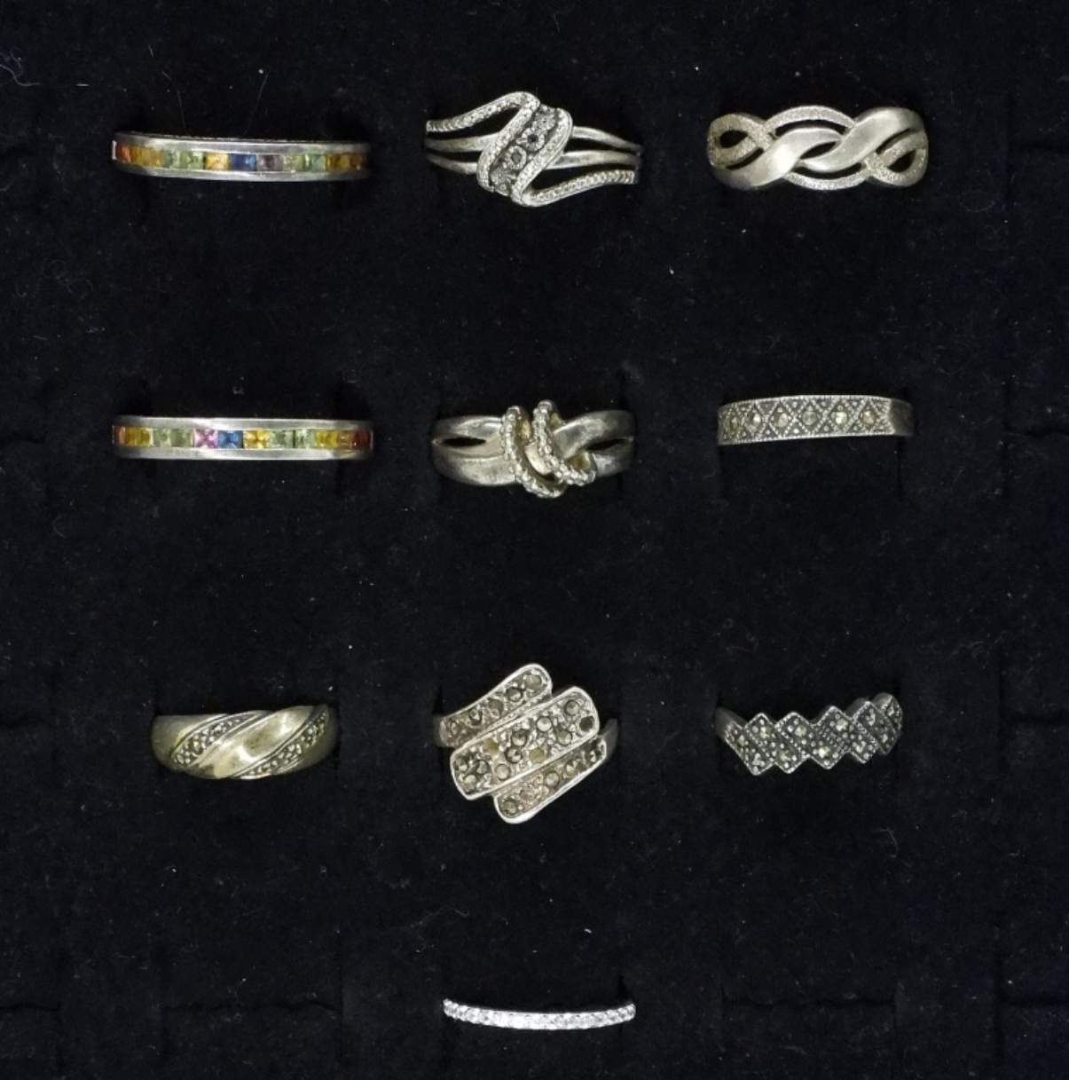 Ten sterling fashion rings, sizes 6-10 (19 dwt)