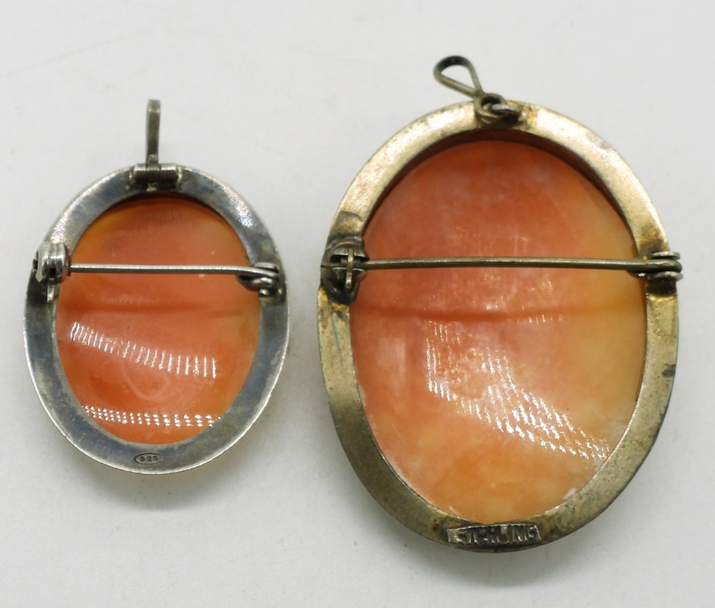 Two sterling cameo brooches, 1″ – 1.5″/ Both are brooches and pendants. (8.8 dwt)