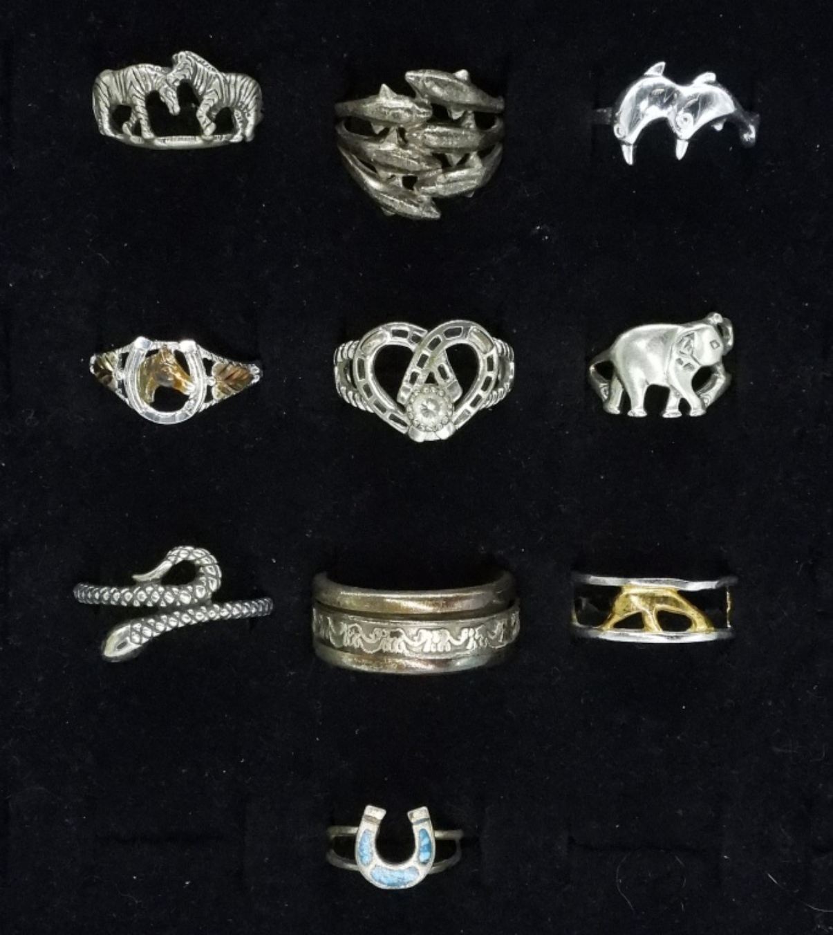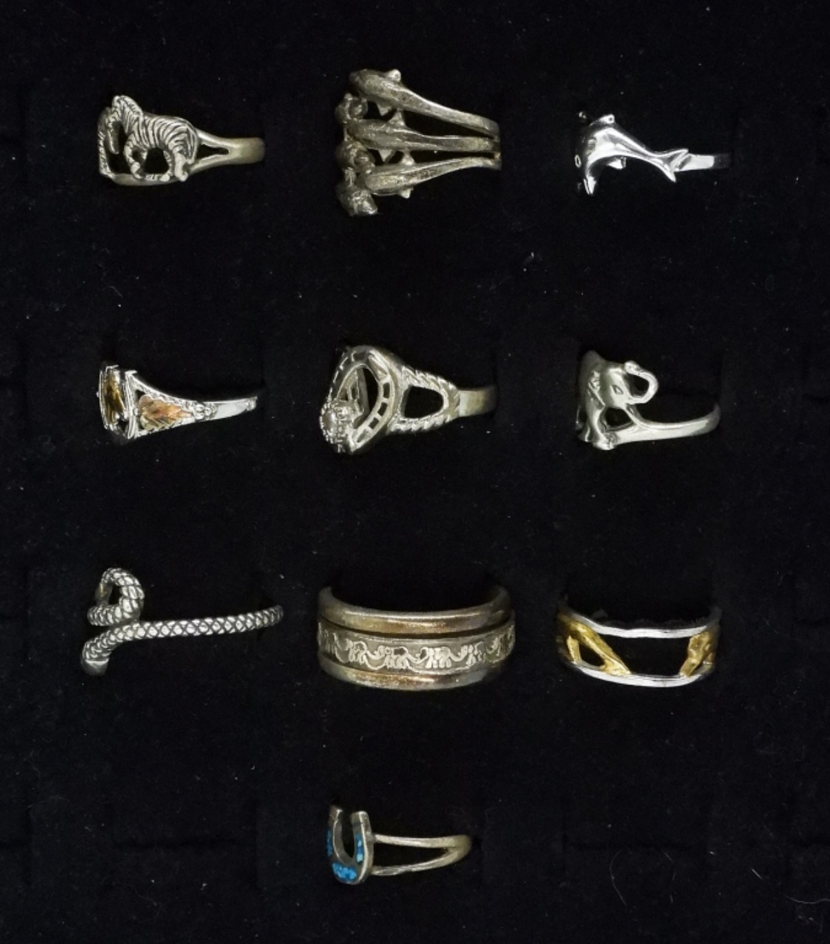 Ten sterling animal rings, sizes 4-12 (24.6 dwt)