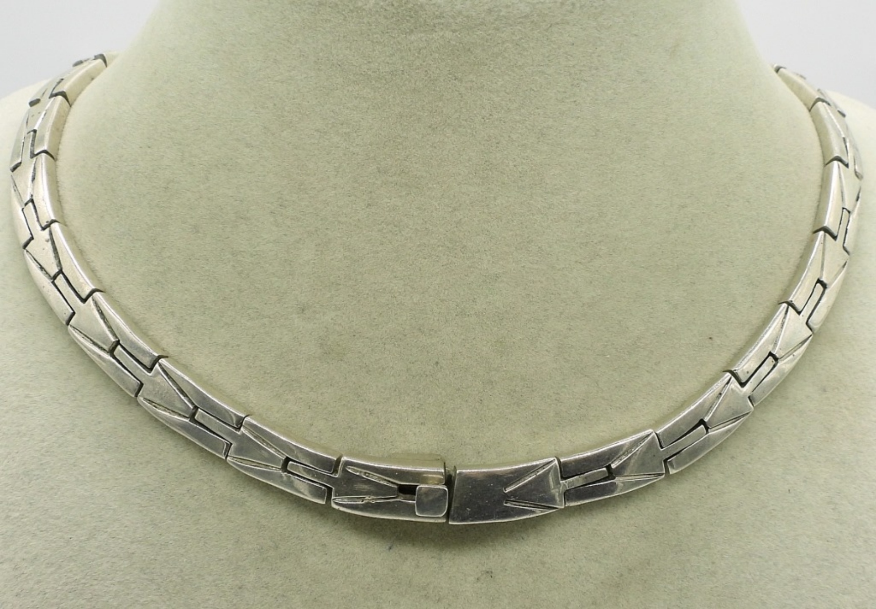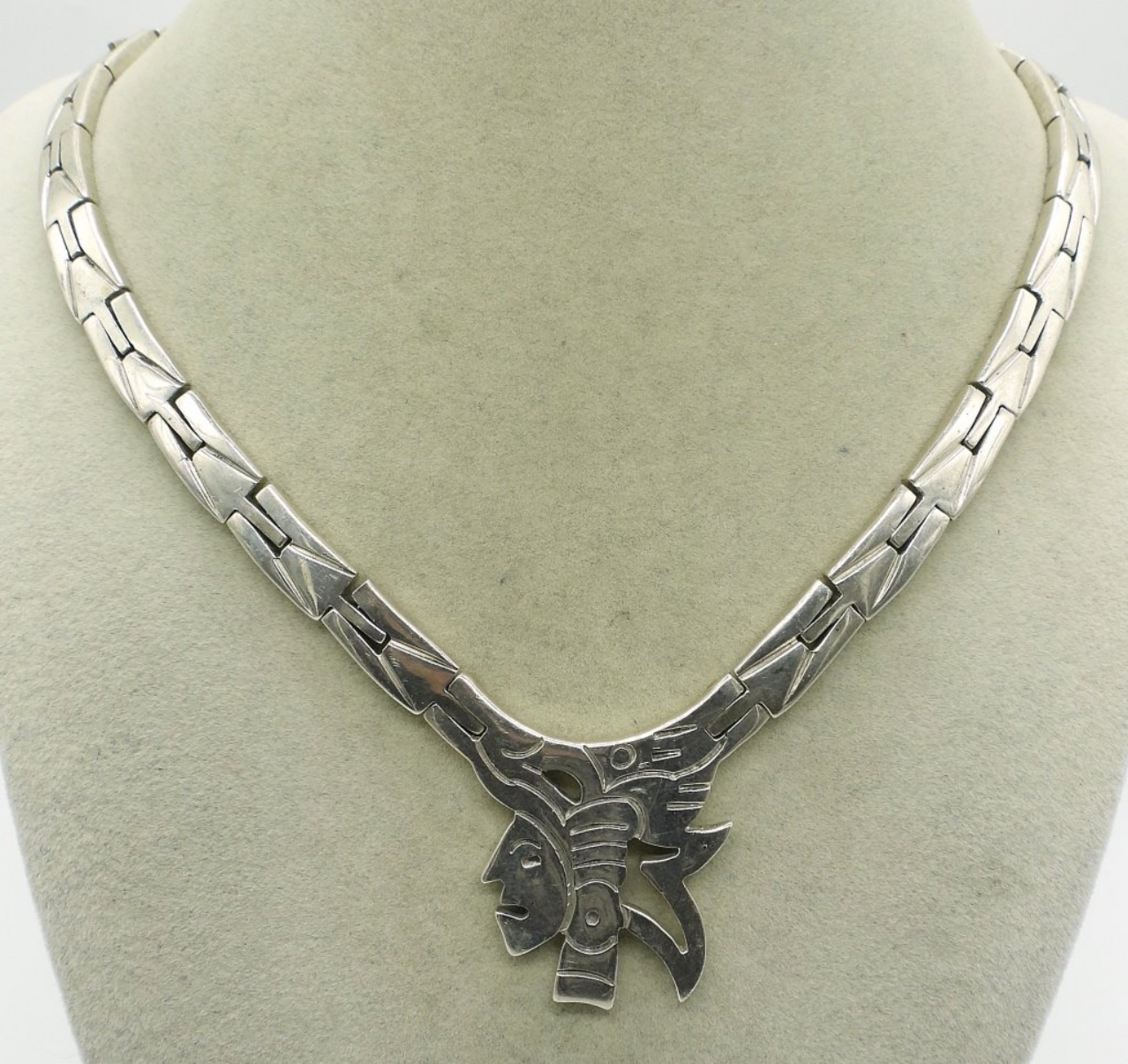 Incredible, Heavy, Thick Taxco Sterling Necklace. Marked “TV-83″. 18-20”. (67.1 dwt)