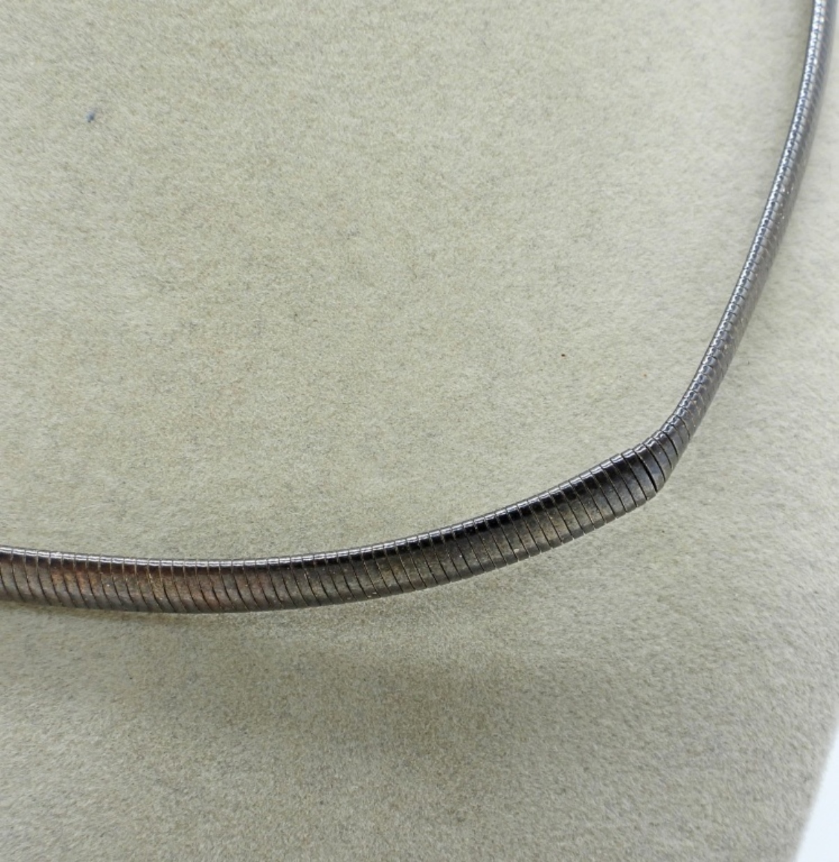 Tharpe Brand, sterling silver chain. 18″. Tarnished and has a kink. (17.8 DWT)