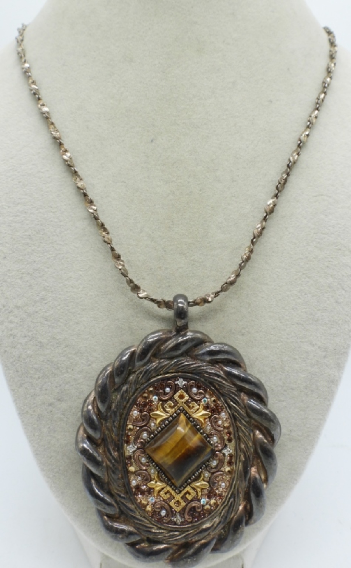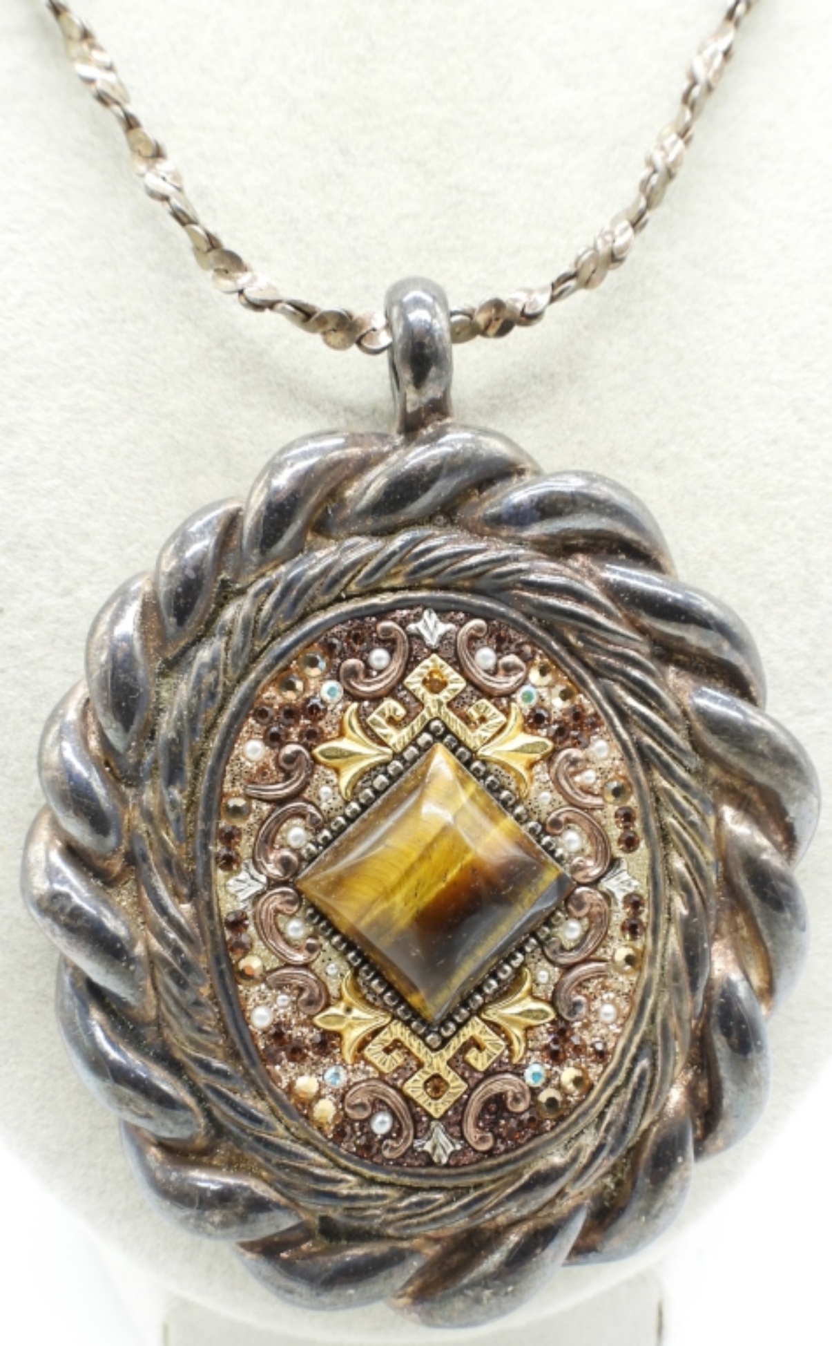 Huge Sterling (marked 925 SO) pendant with tigers eye. Chain is 20″. (28.2 DWT)