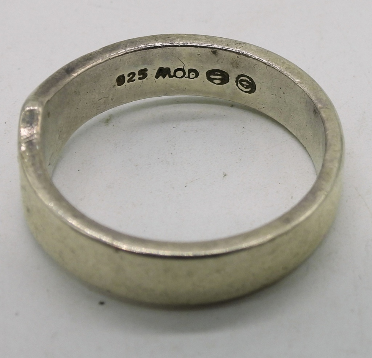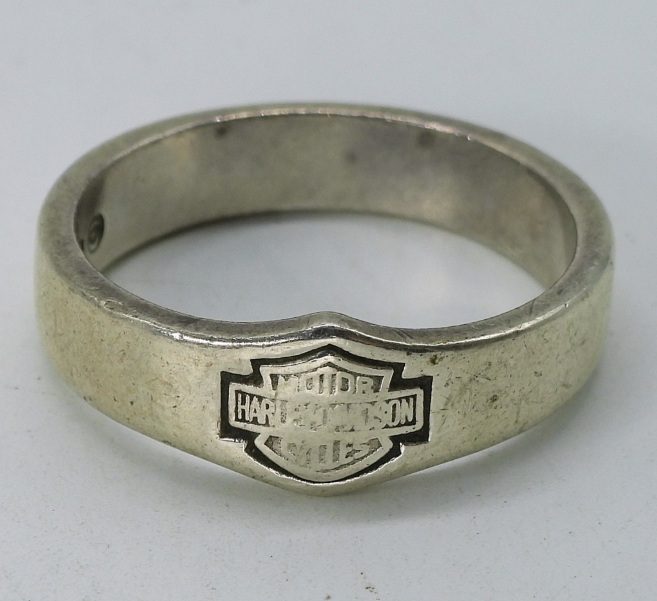 Harley Davidson sterling silver ring, size 15. The Harley logo is somewhat worn away but still visible. Stamped inside, “925 MOD”. (6.8 dwt)