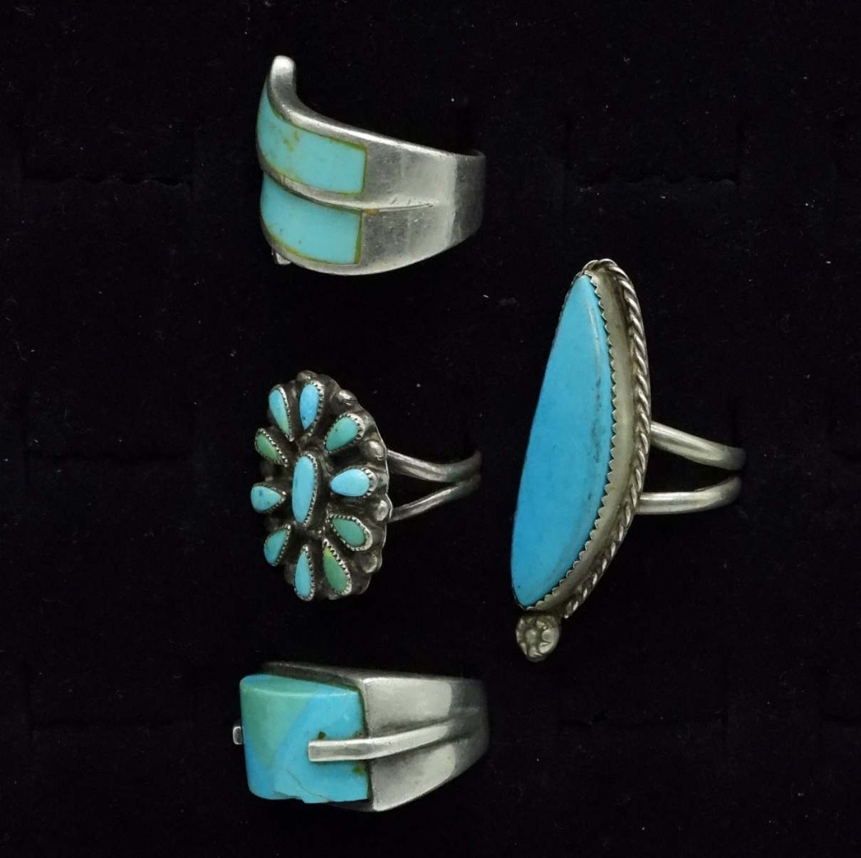 Four vintage sterling turquoise rings, sizes 7, 8, 9. (24.7 dwt)