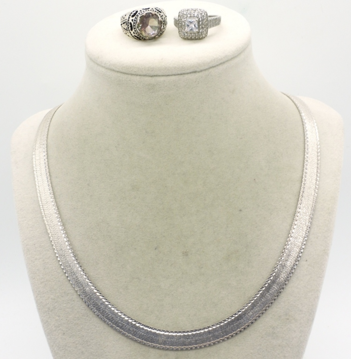 Sterling Milor Italy chain, gorgeous! 22″ long. Two sterling rings, size 7-7.5 (26.4 dwt)