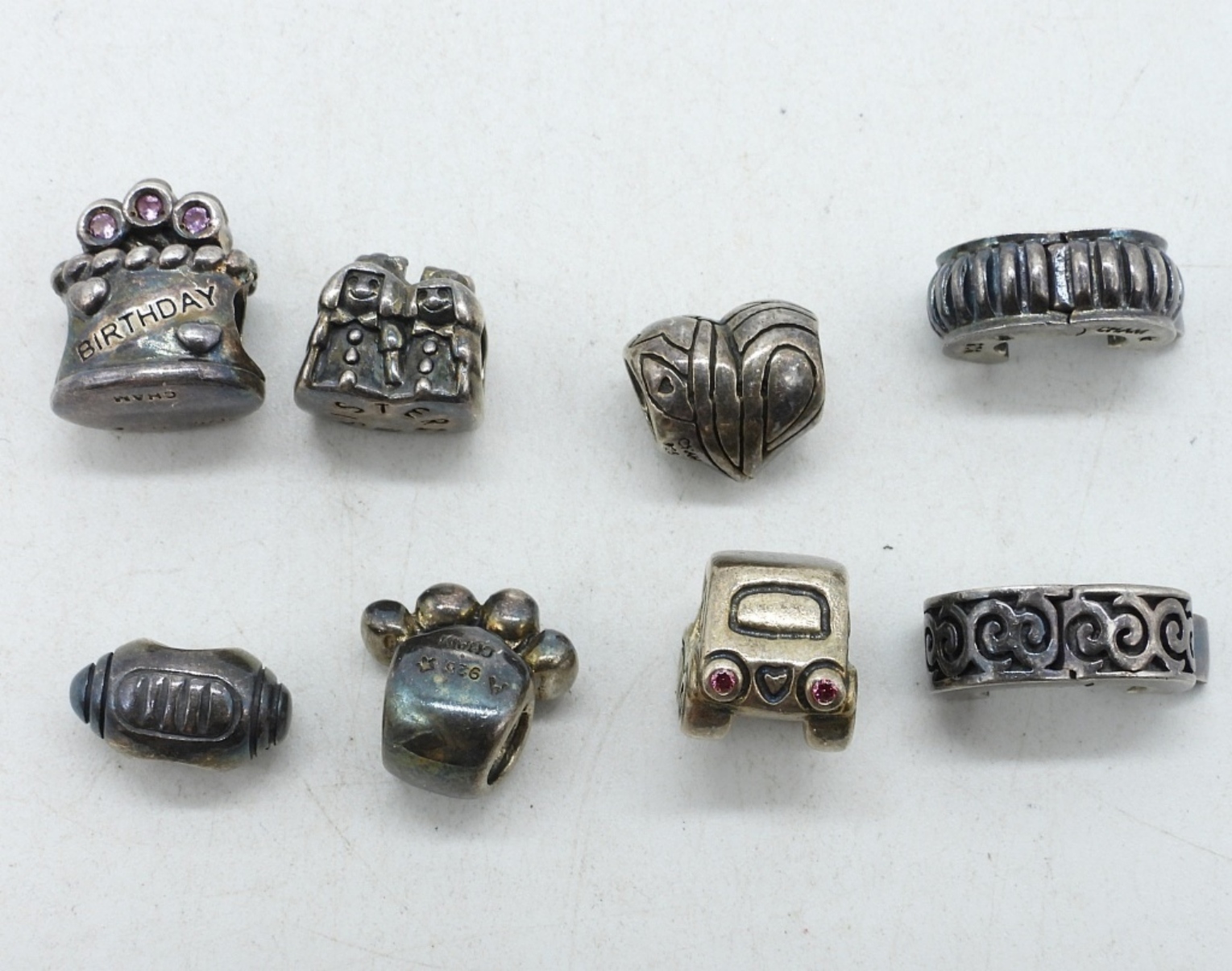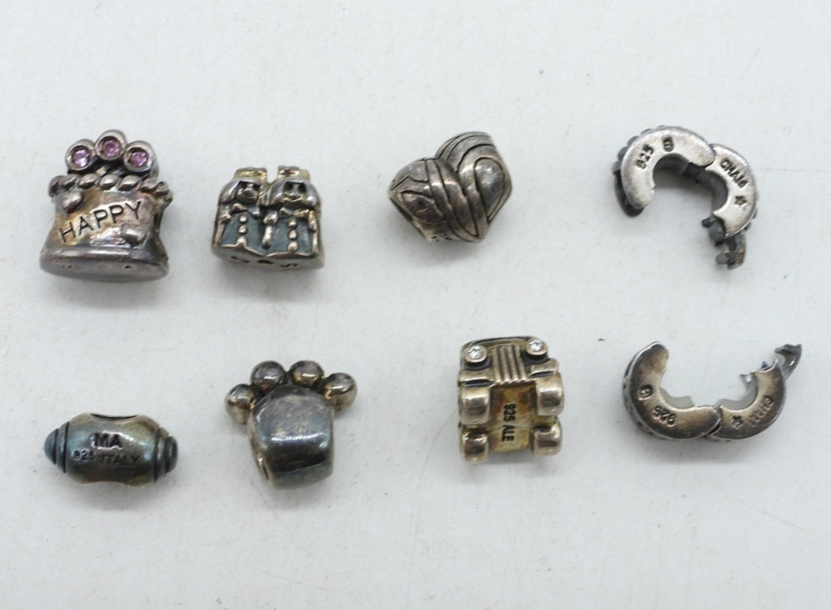 8 Sterling Pandora Style Charms. Two open up and fit tightly to keep others from moving. (16.2 dwt)