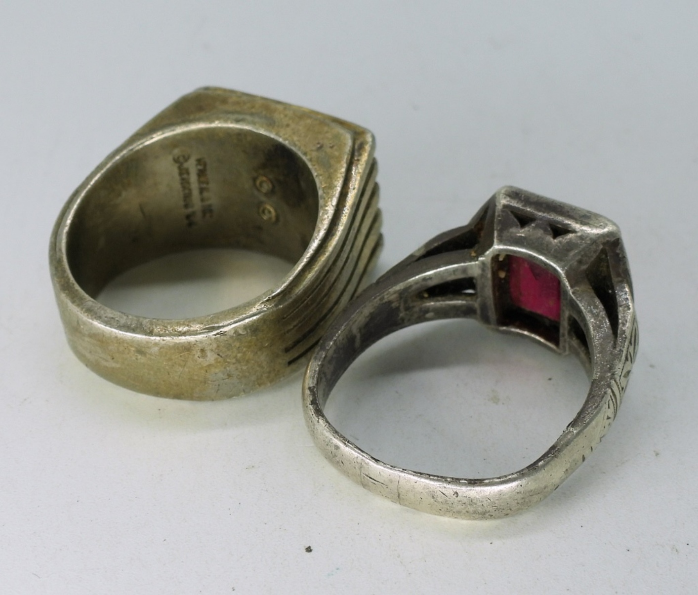 Two sterling men’s rings, sizes 9.5-10 (20.3 dwt)