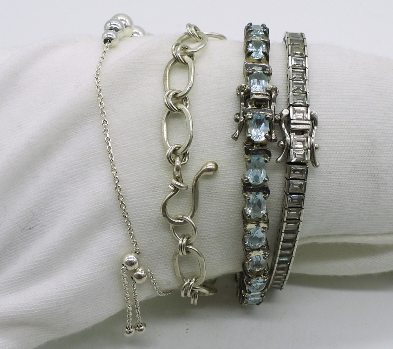 Four sterling fashion bracelets, 7-8″. (29 dwt)