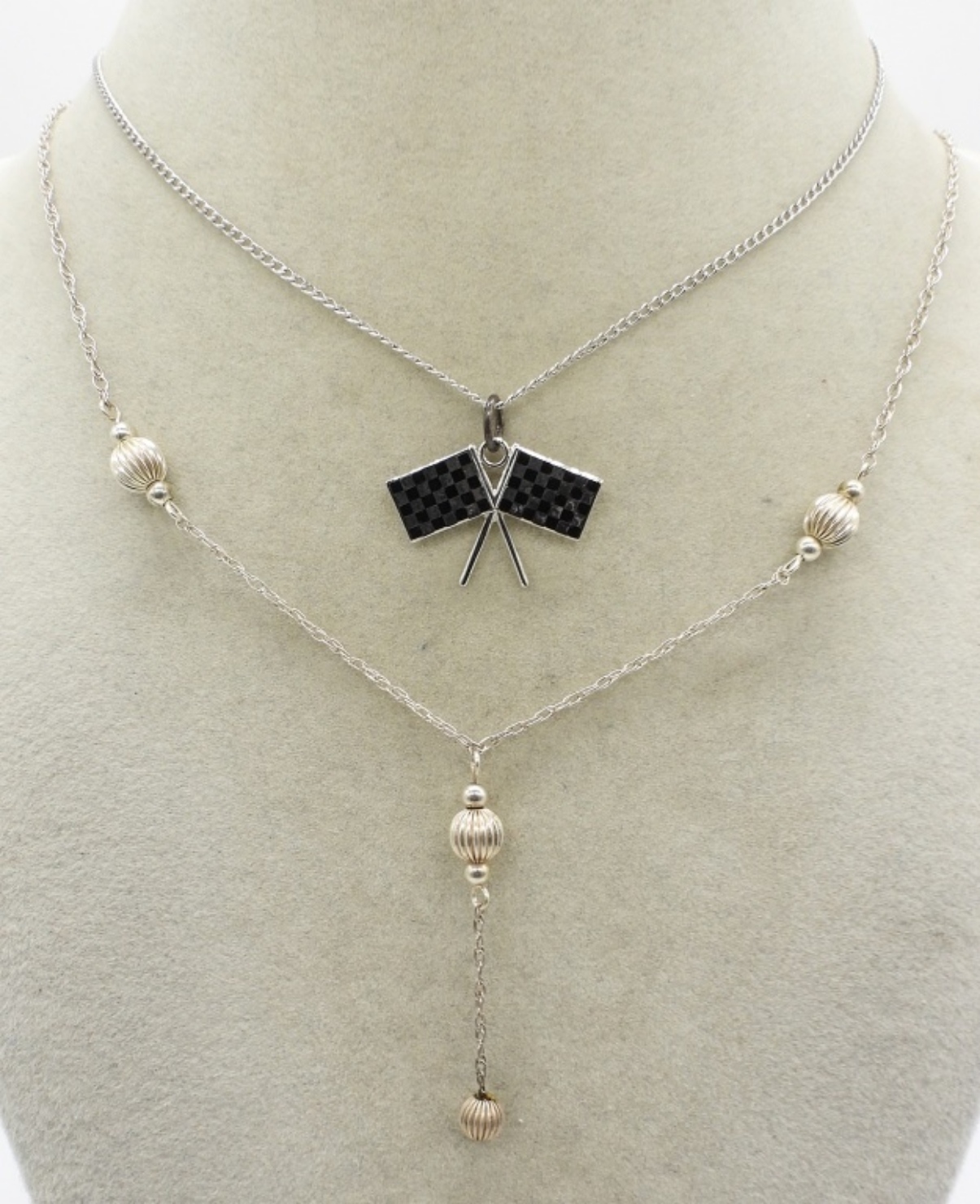 Five sterling pendants and chains. Chain lengths are 16″ – 28″. (13.9 dwt)
