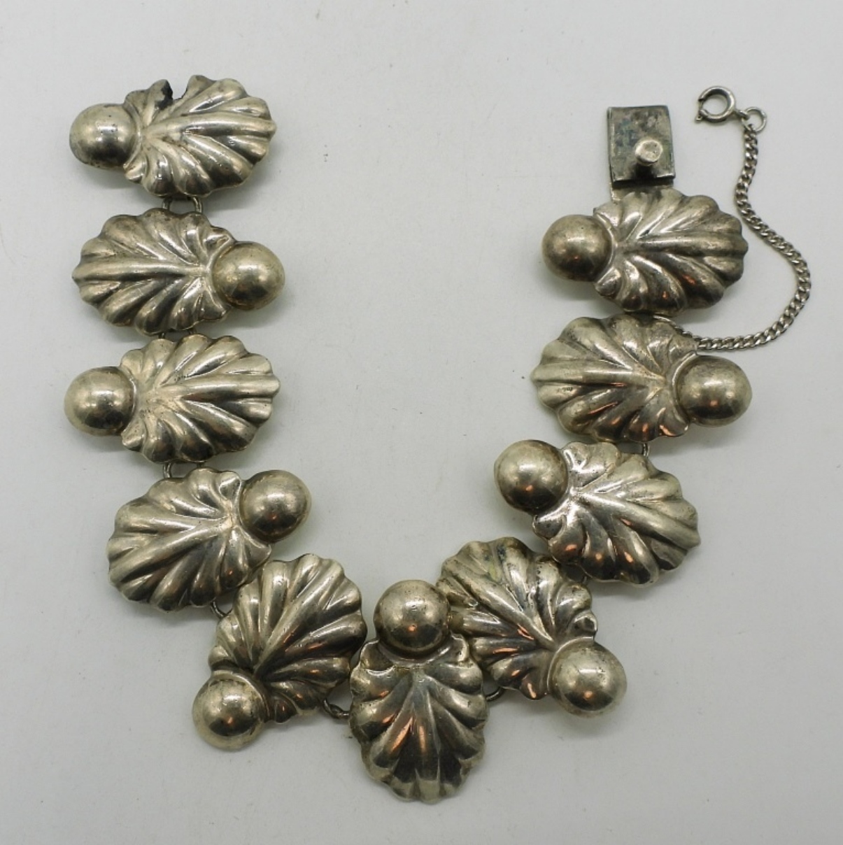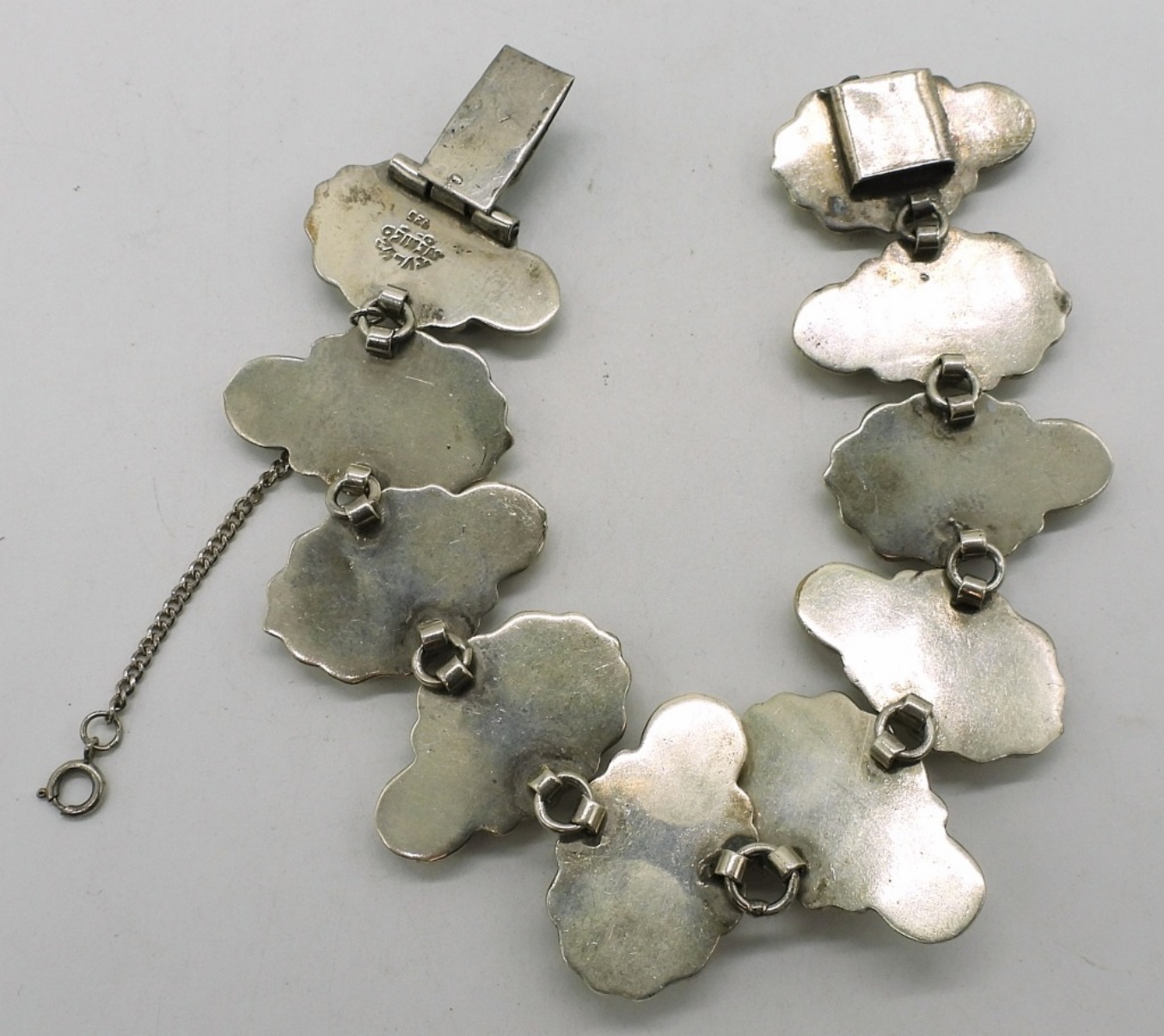 Vintage Taxco sterling bracelet, 7.5″. Marked “TV-42 Mexico 925”. (43.7 dwt)